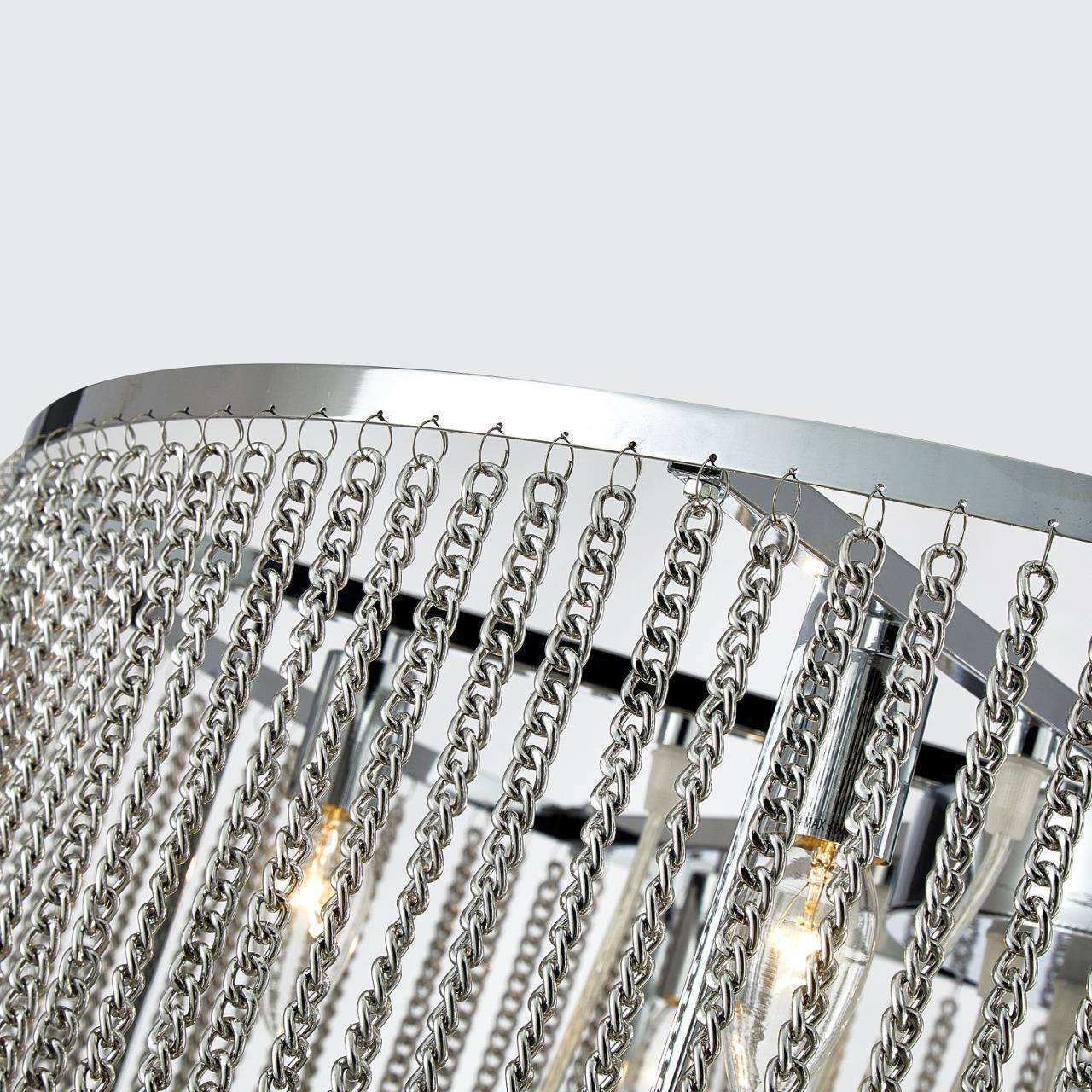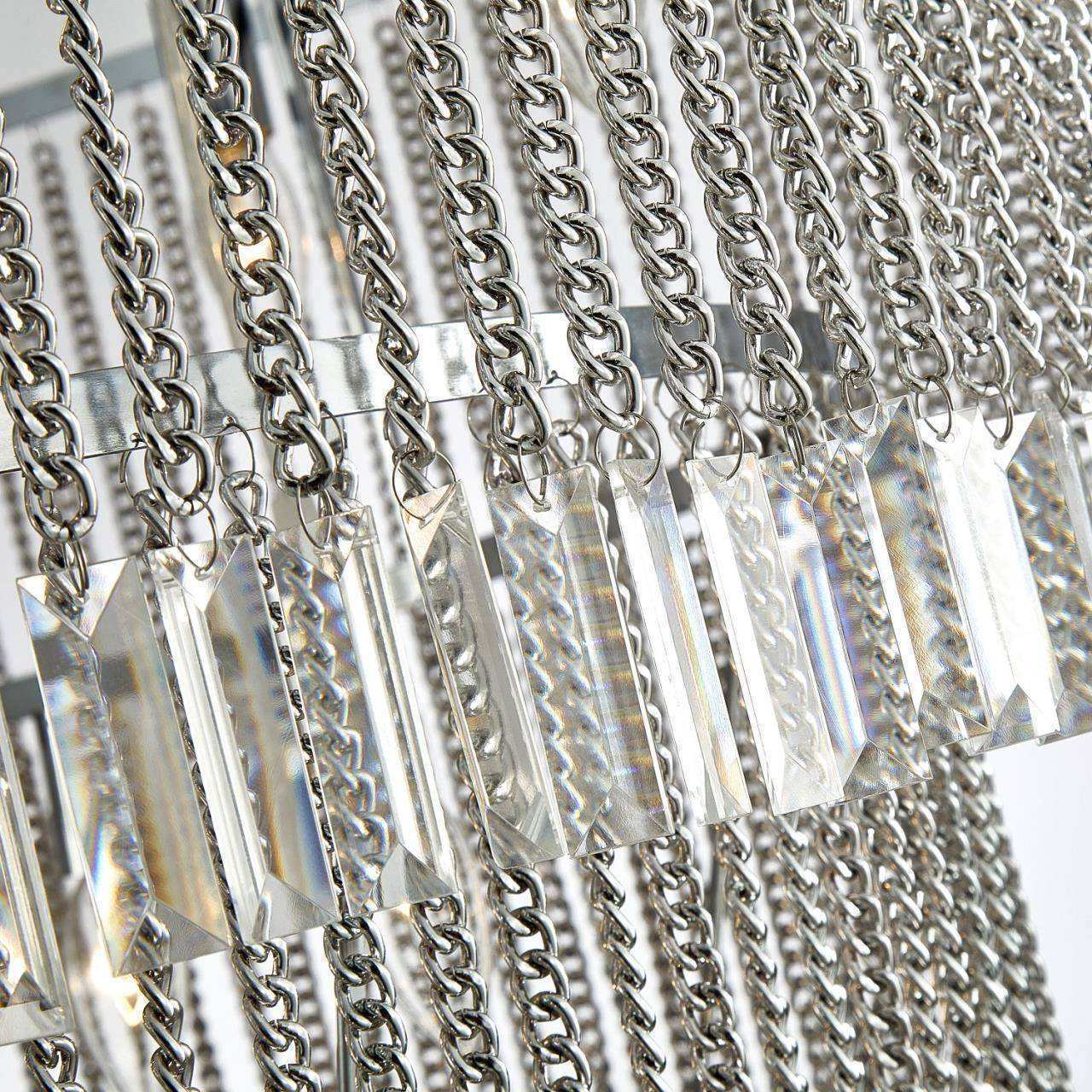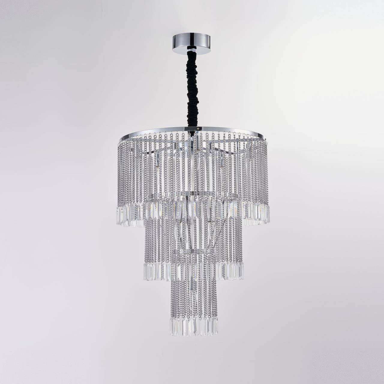 Каркас цвета хром, подвески из металлических цепочек, декоративные элементы из прозрачного хрусталя