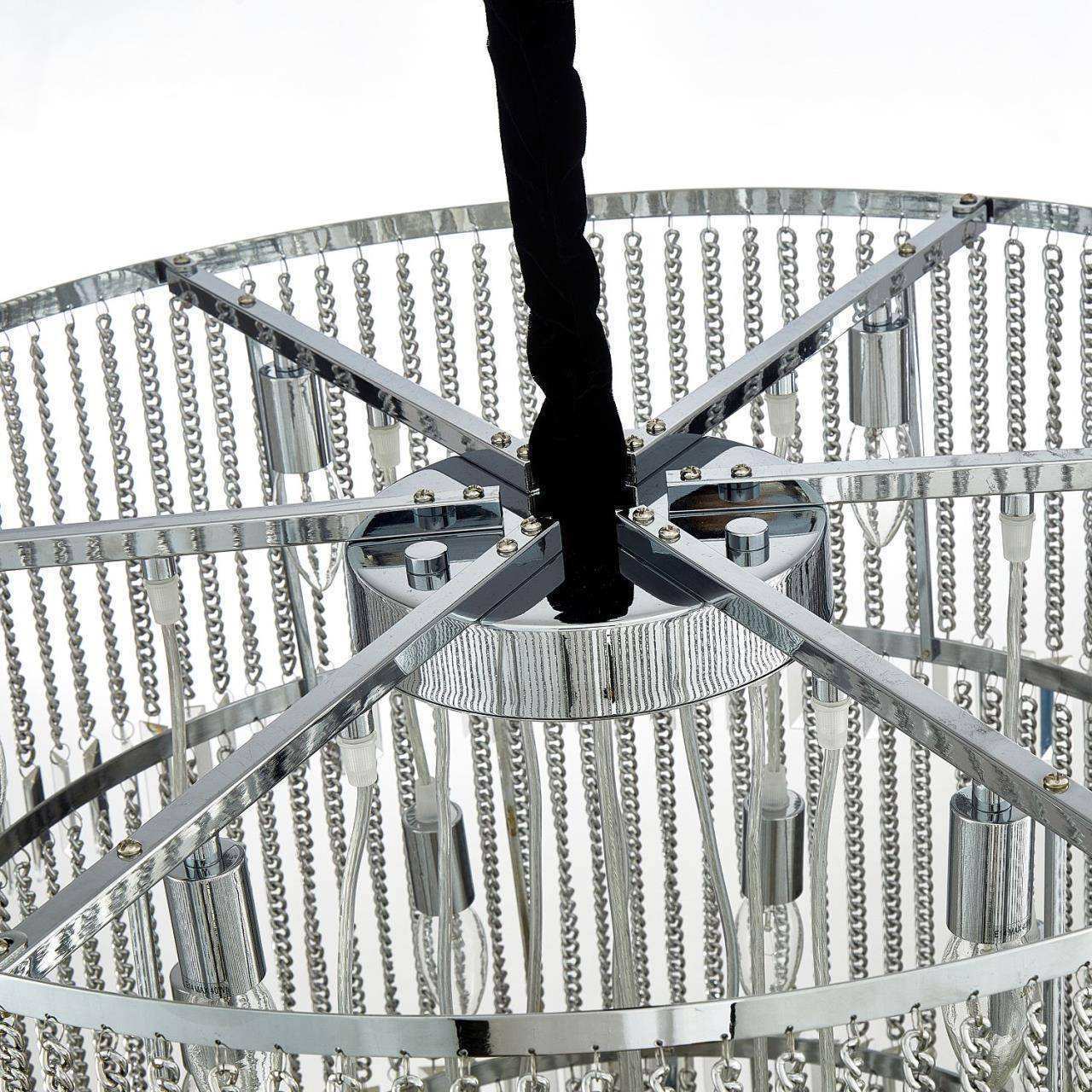 каркас цвета хром, подвески из металлических цепочек, декоративные элементы из прозрачного хрусталя