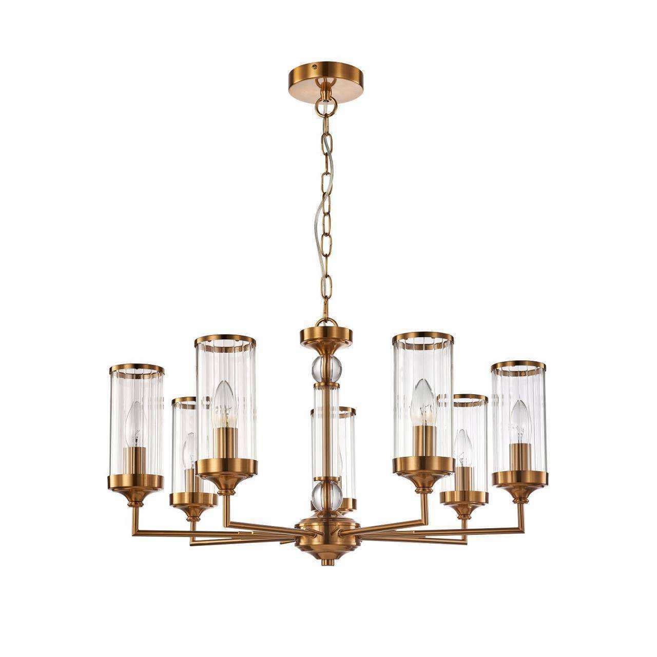 Каркас цвета античной латуни, плафоны и декор из прозрачного стекла