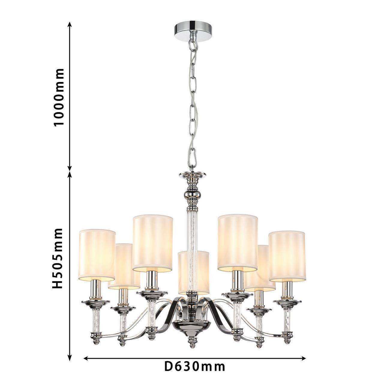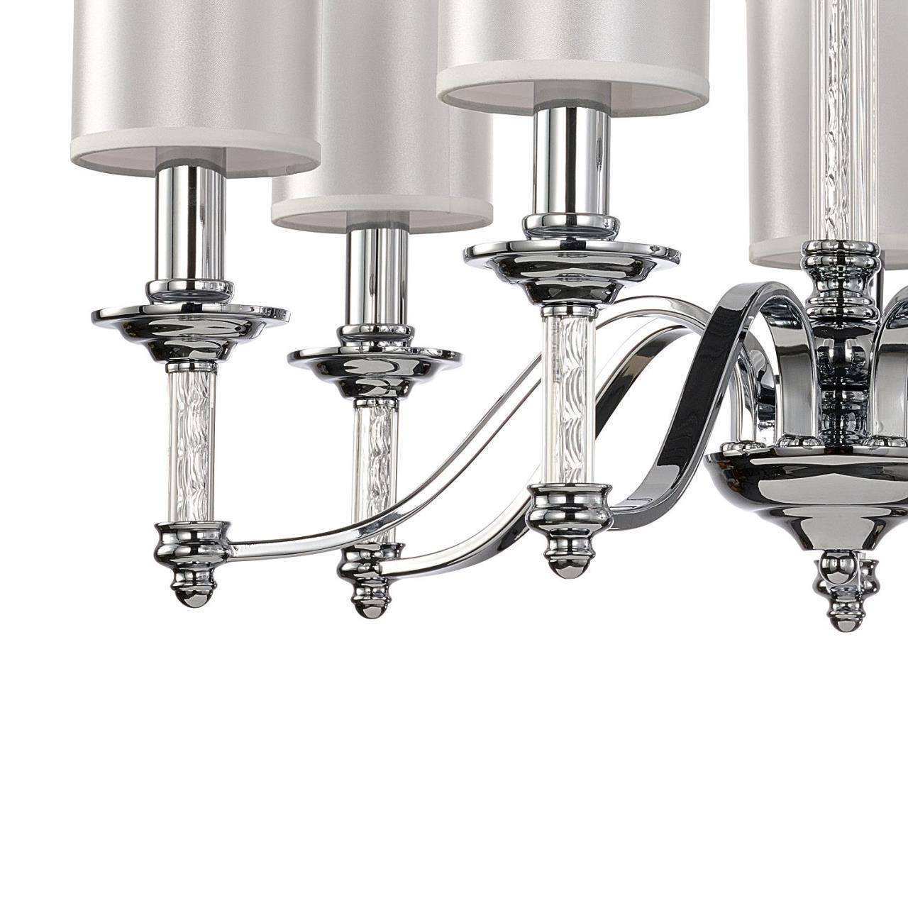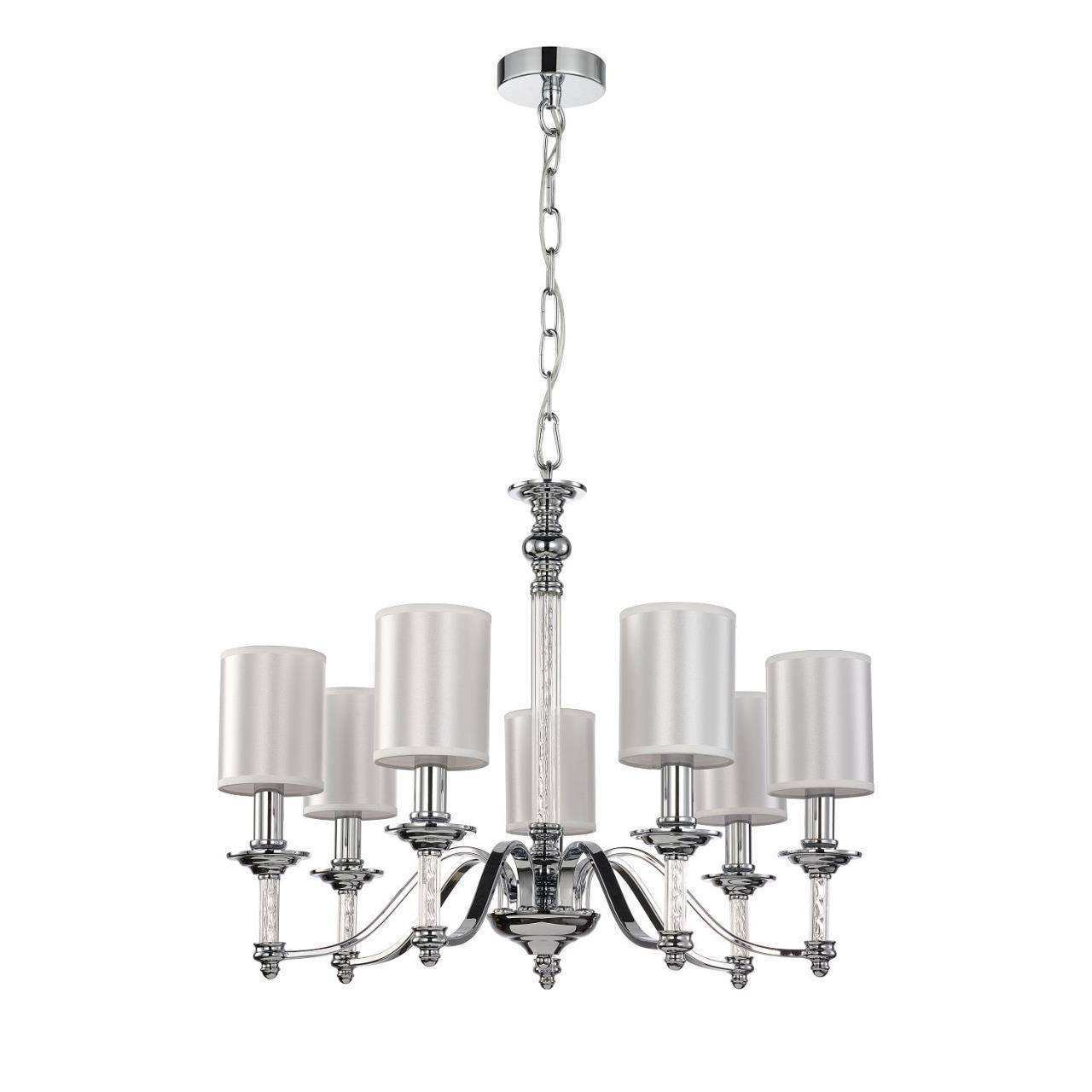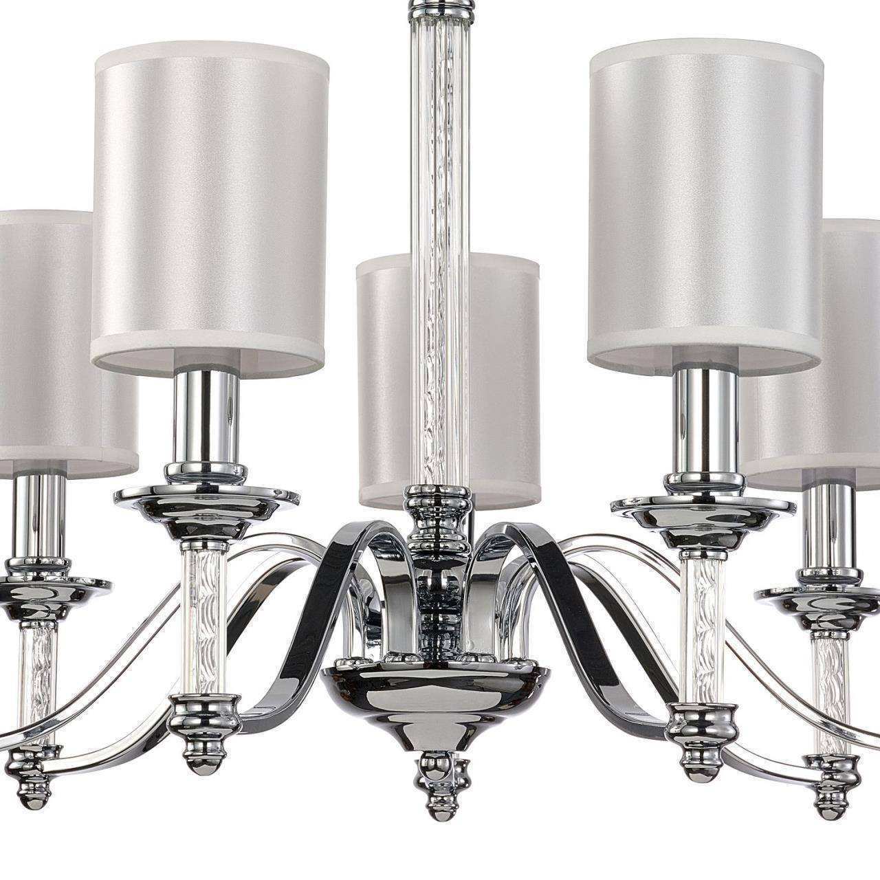 Каркас цвета хром, плафоны из белой атласной ткани, декоративные элементы из прозрачного стекла