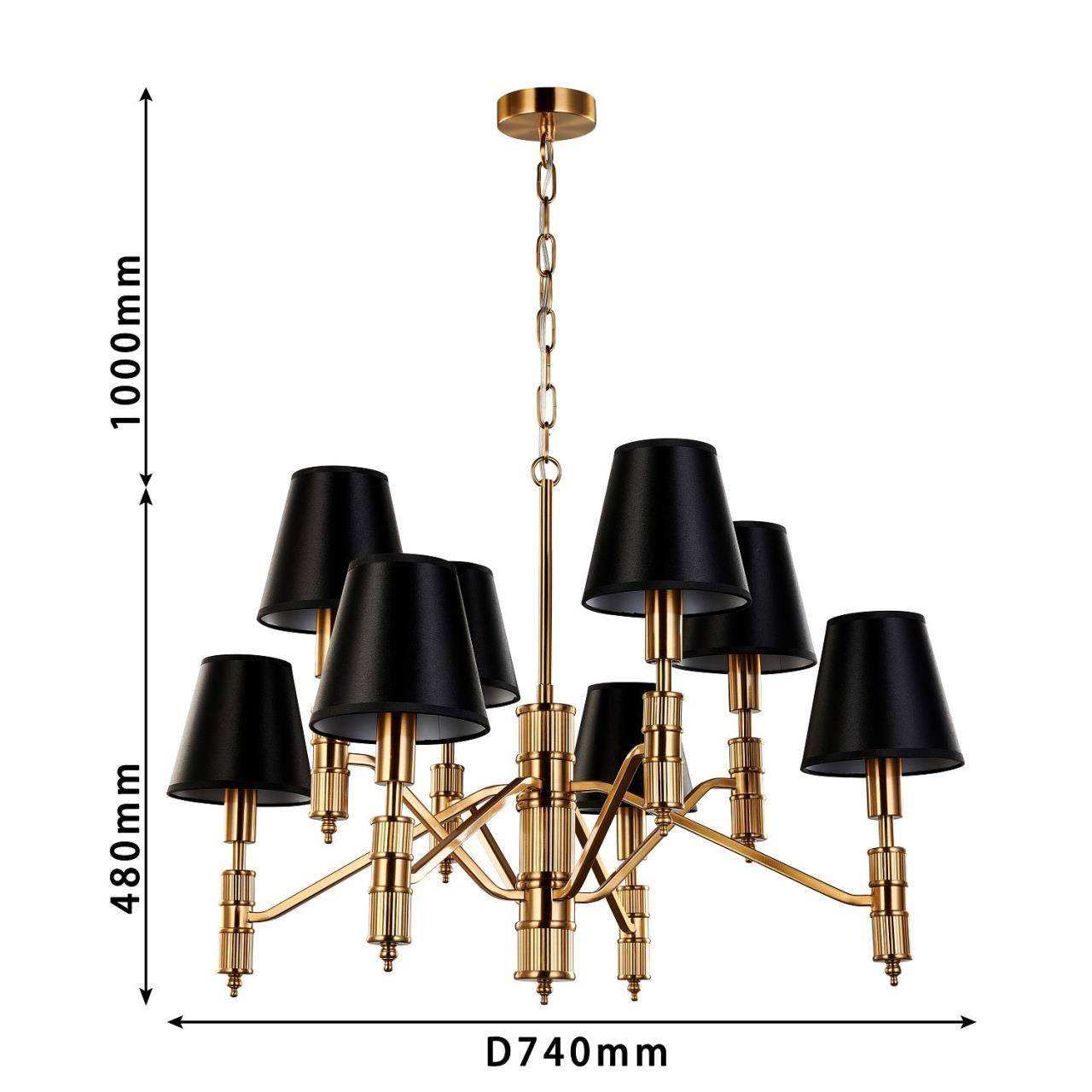 каркас цвета античной латуни, плафоны из черной атласной ткани
