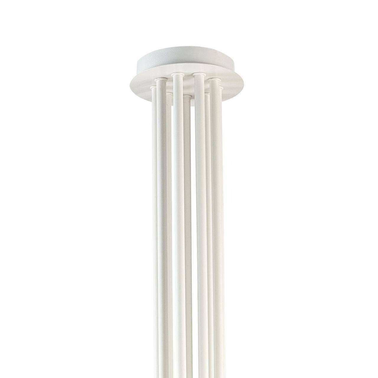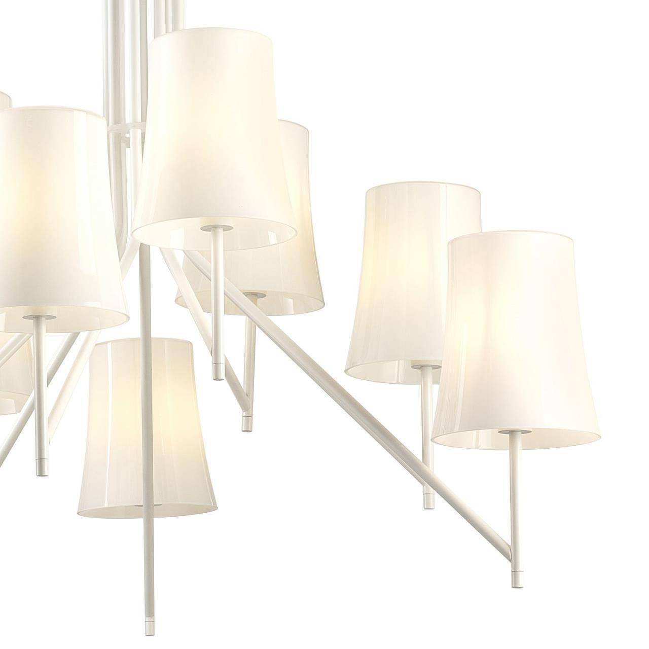 каркас матового белого цвета, плафоны из выдувного стекла дуплекс цвета опала