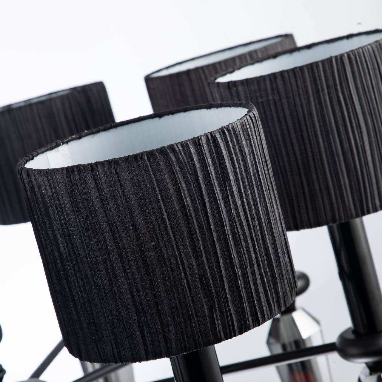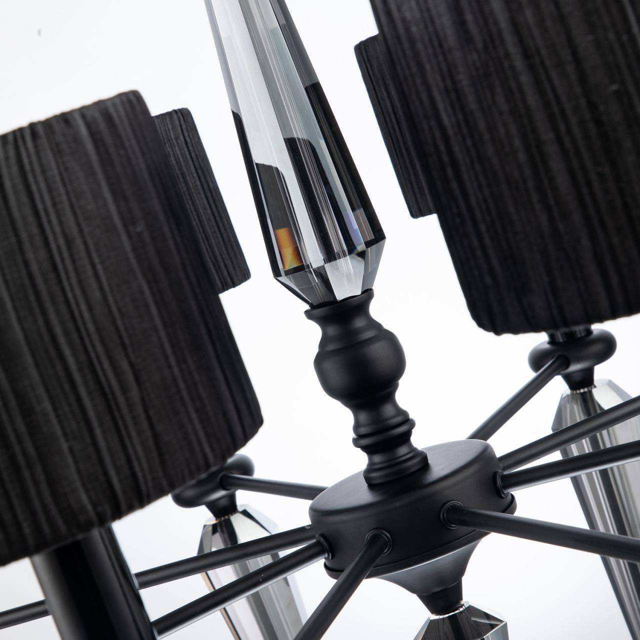каркас цвета матовый черный, плафоны из черной органзы, декоративные элементы из хрусталя серо-дымчатого цвета