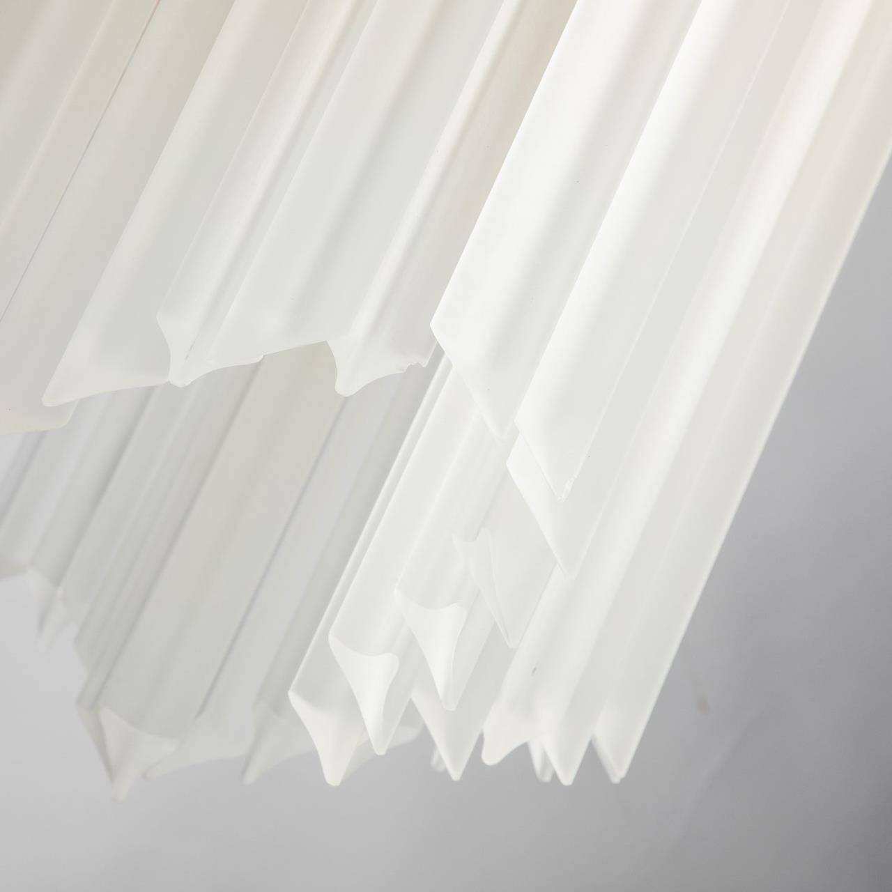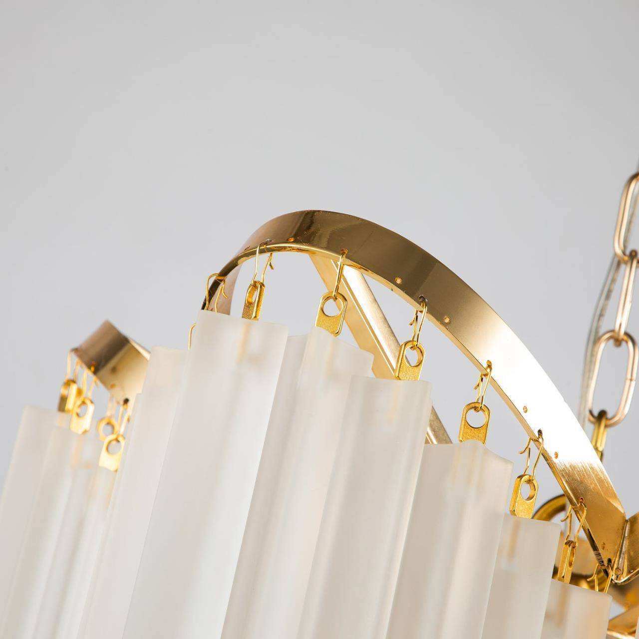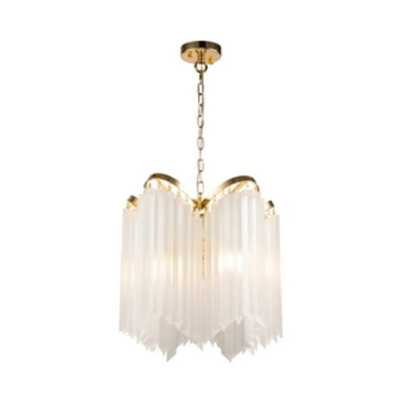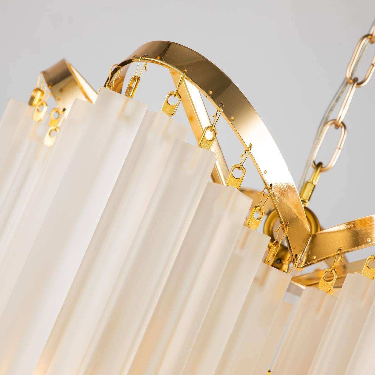 Каркас золотого цвета, подвески из стеклянных пластин белого матового цвета