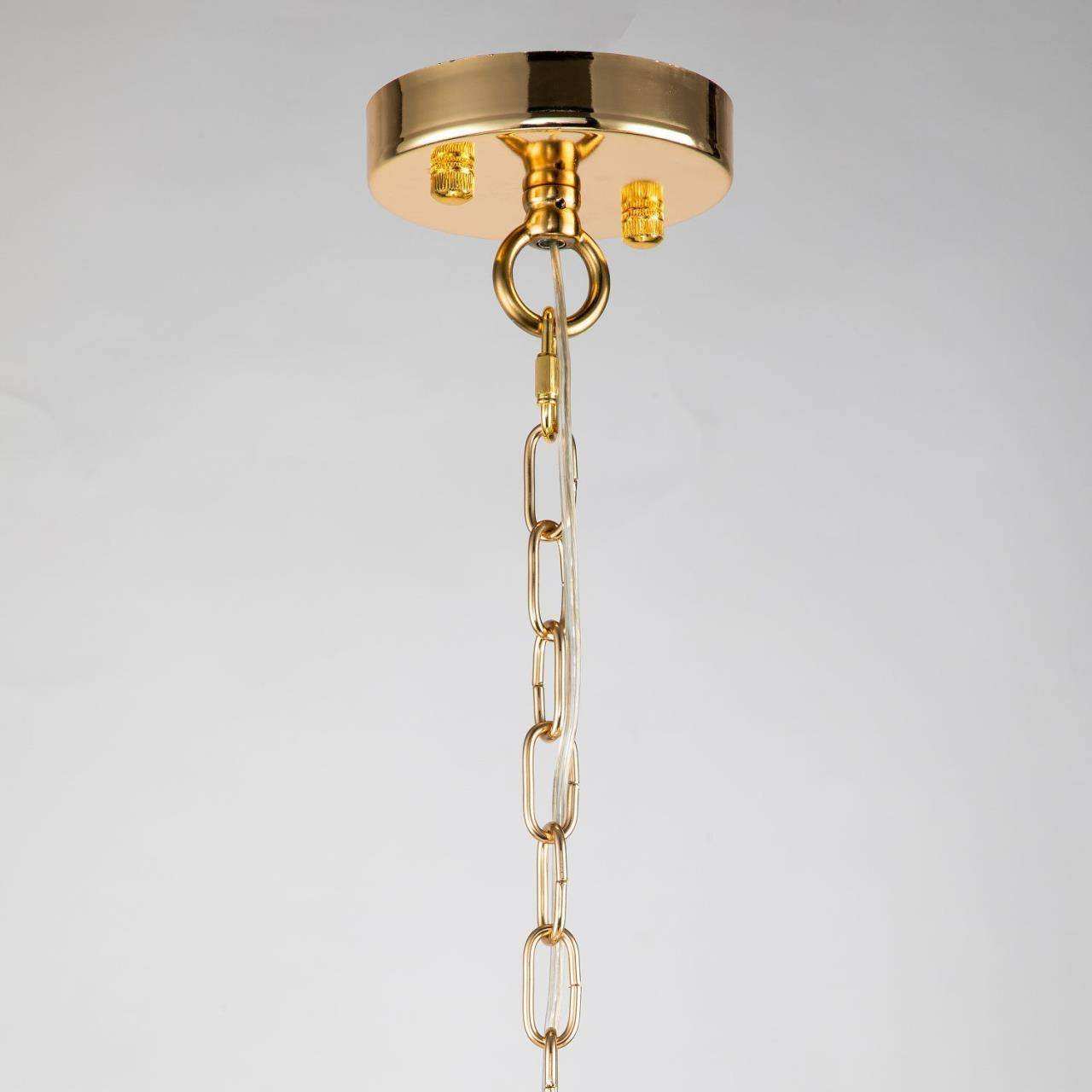 каркас золотого цвета, подвески из стеклянных пластин белого матового цвета