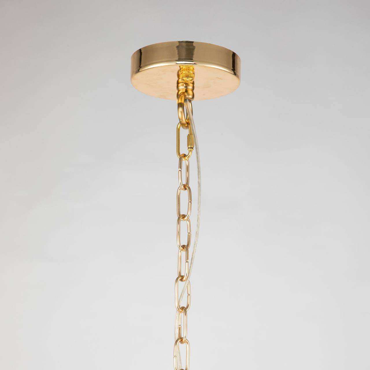 каркас золотого цвета, подвески из стеклянных пластин белого матового цвета