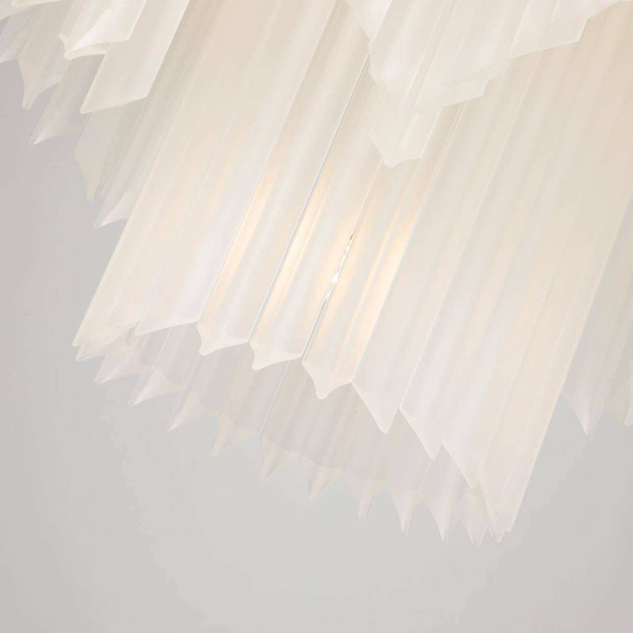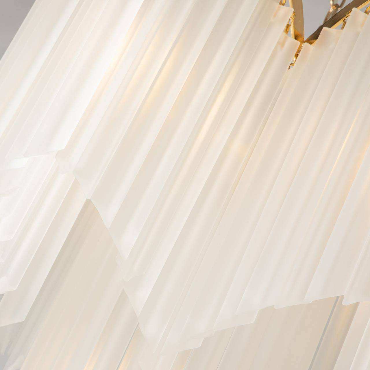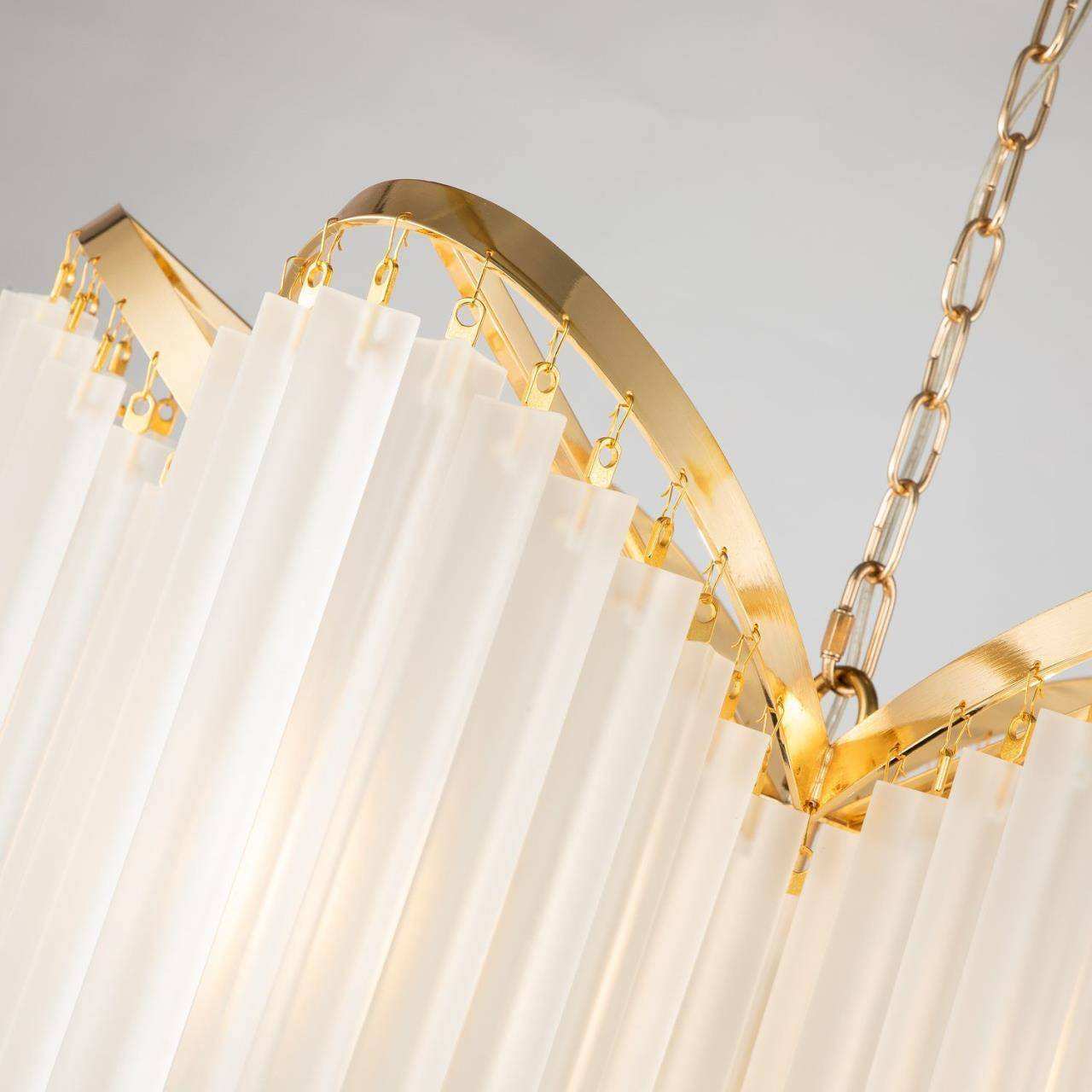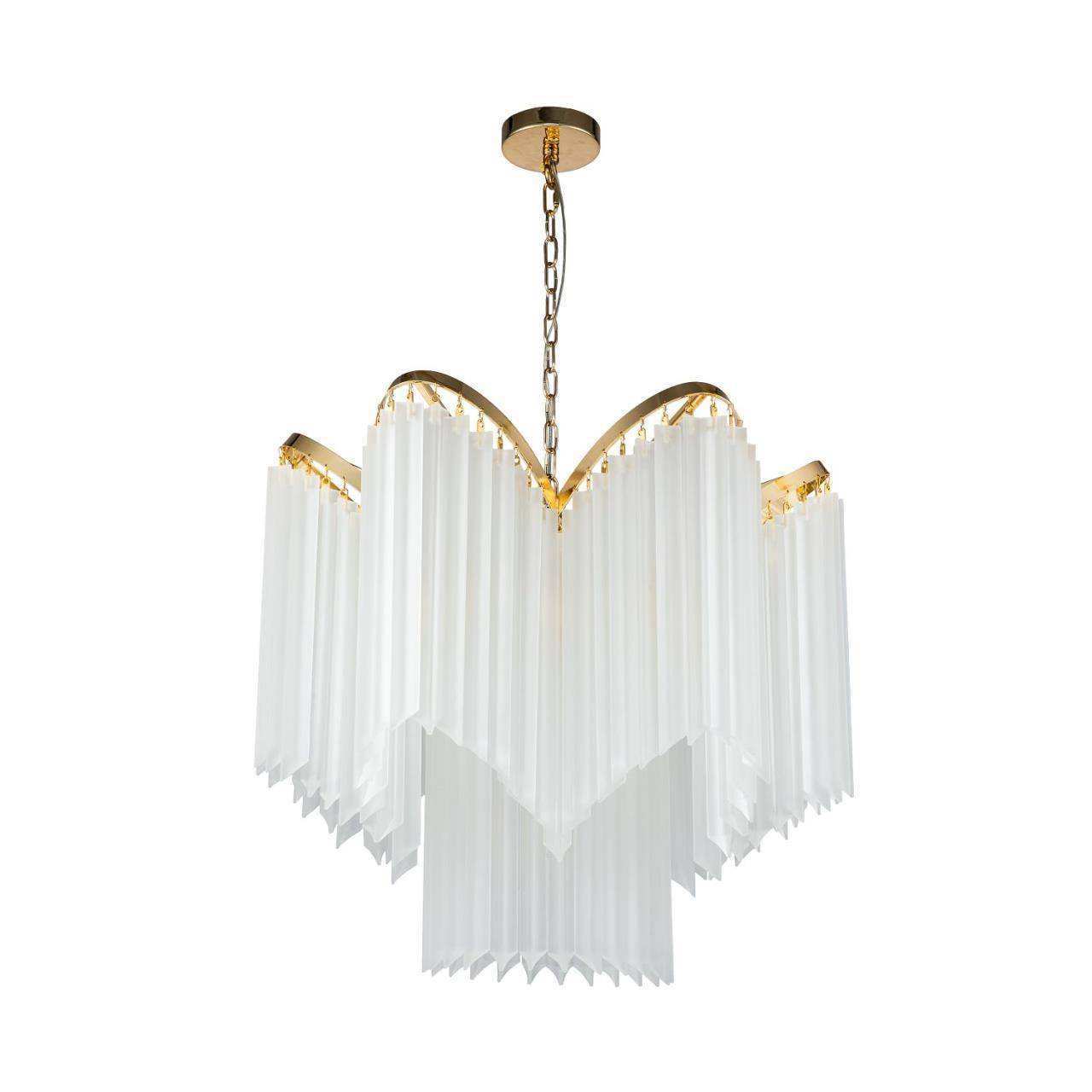 Каркас золотого цвета, подвески из стеклянных пластин белого матового цвета