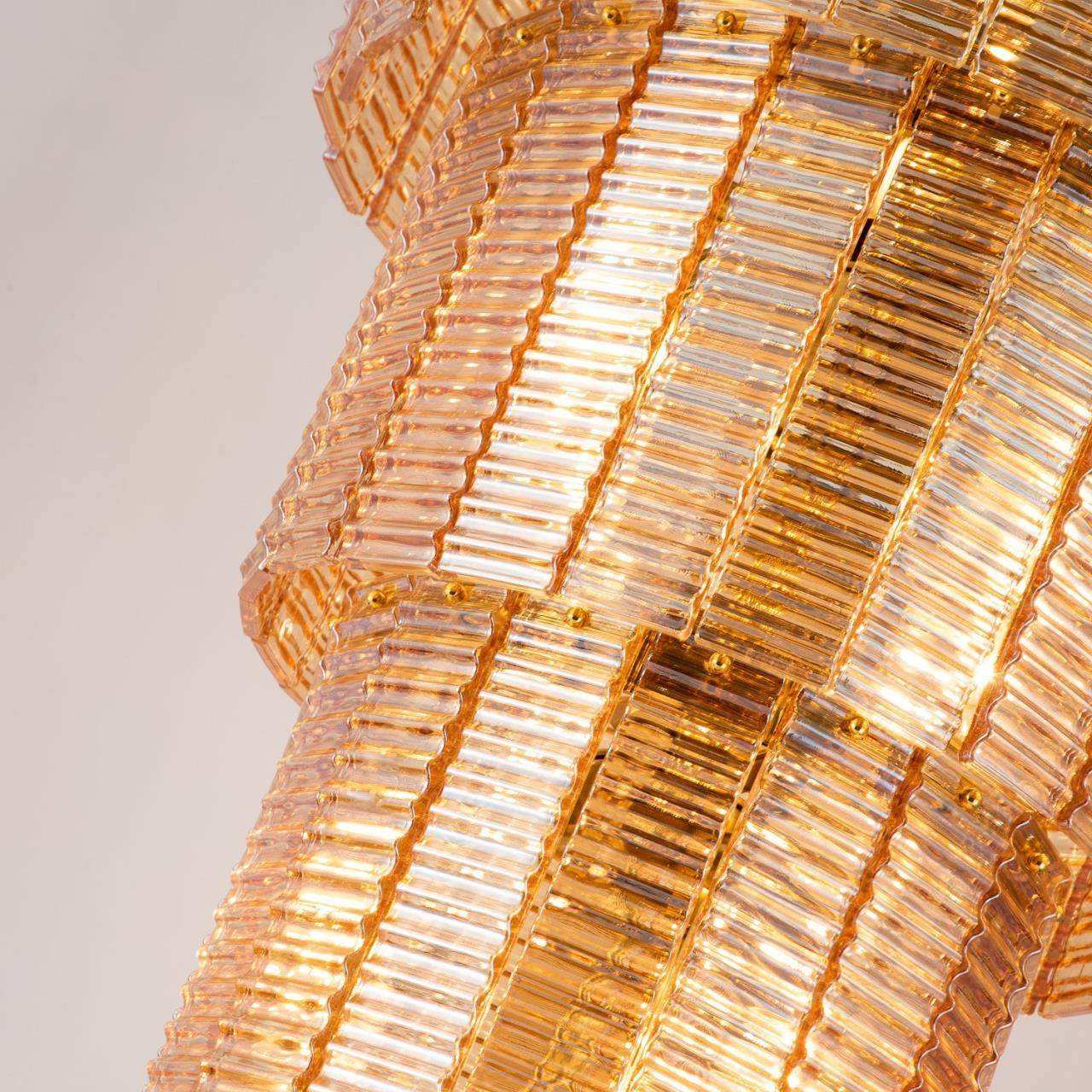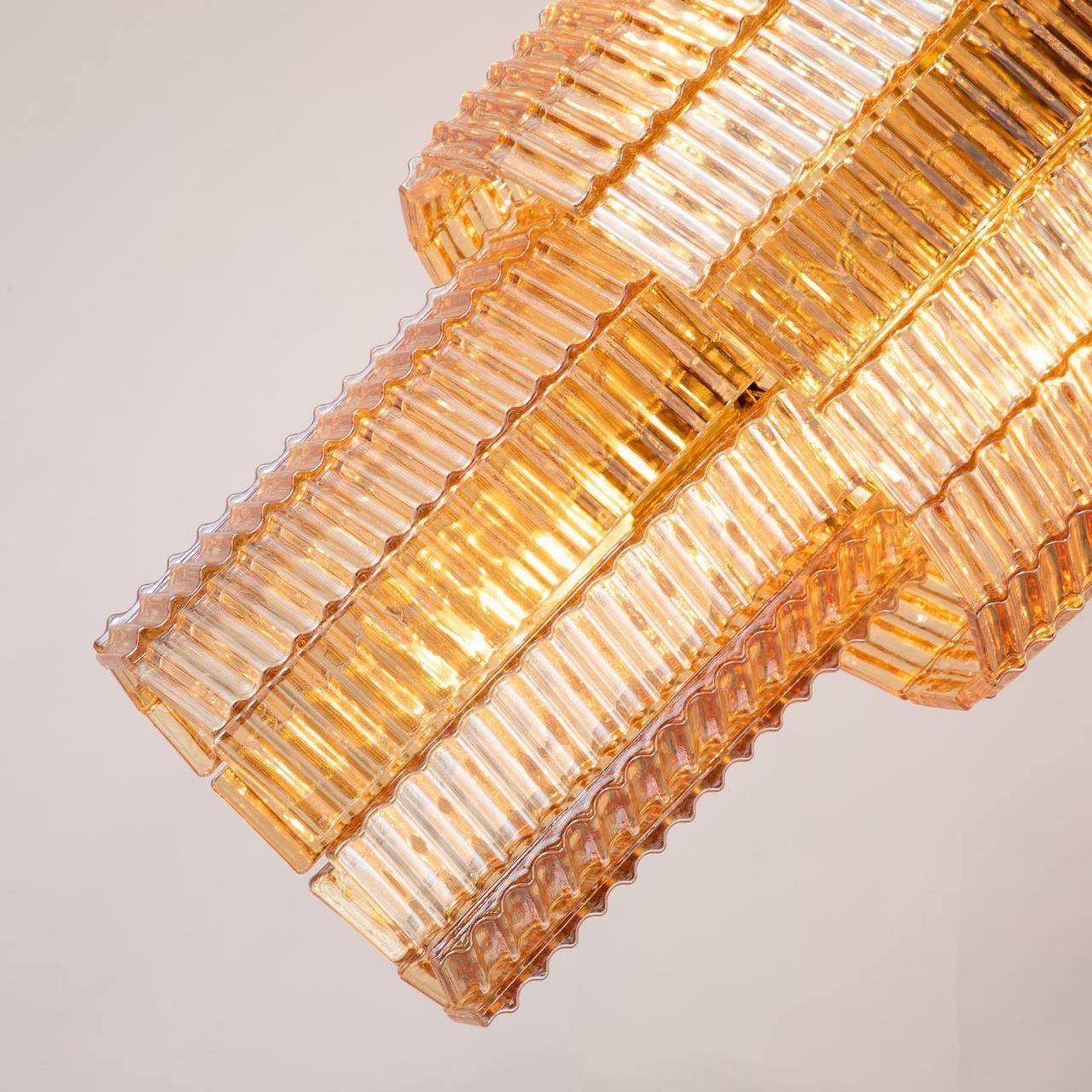 каркас золотого цвета, подвески из рифленого стекла янтарного цвета, изготовленного по Муранской технологии