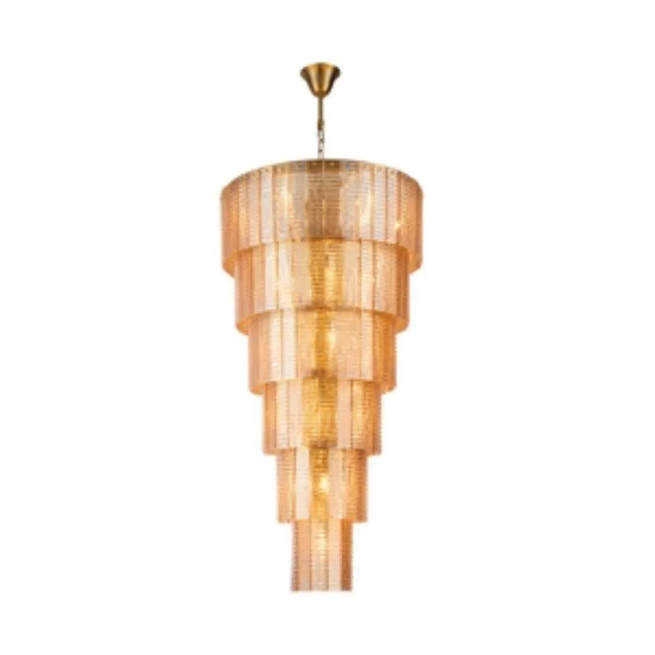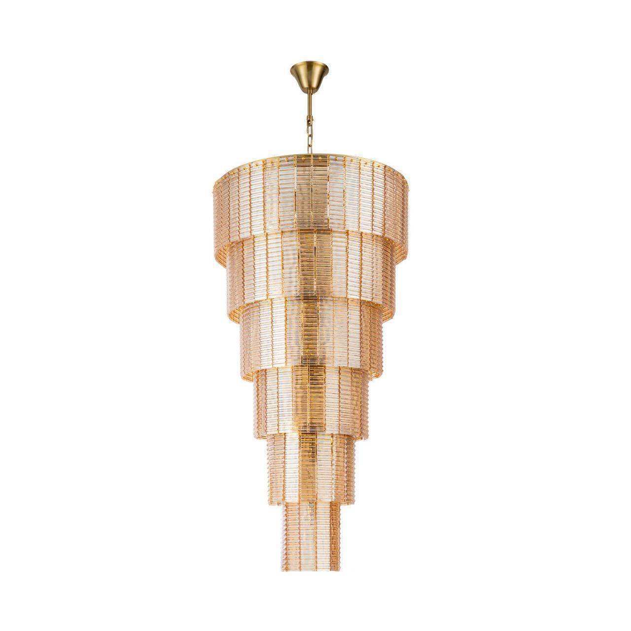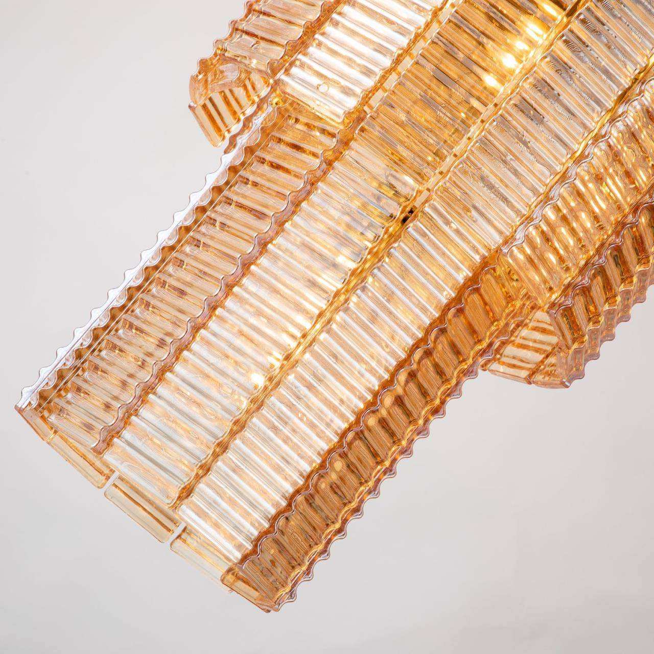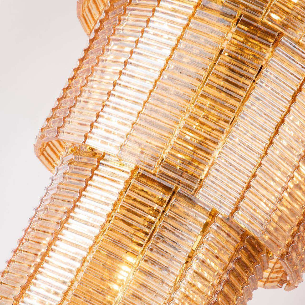 каркас золотого цвета, подвески из рифленого стекла янтарного цвета, изготовленного по Муранской технологии