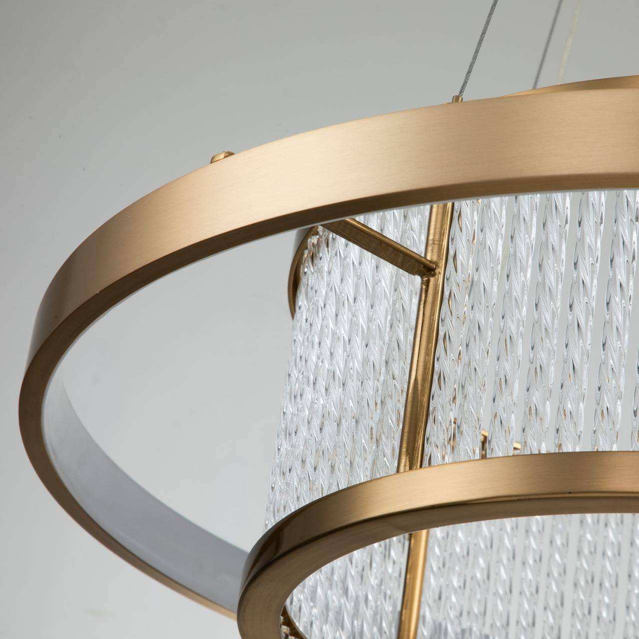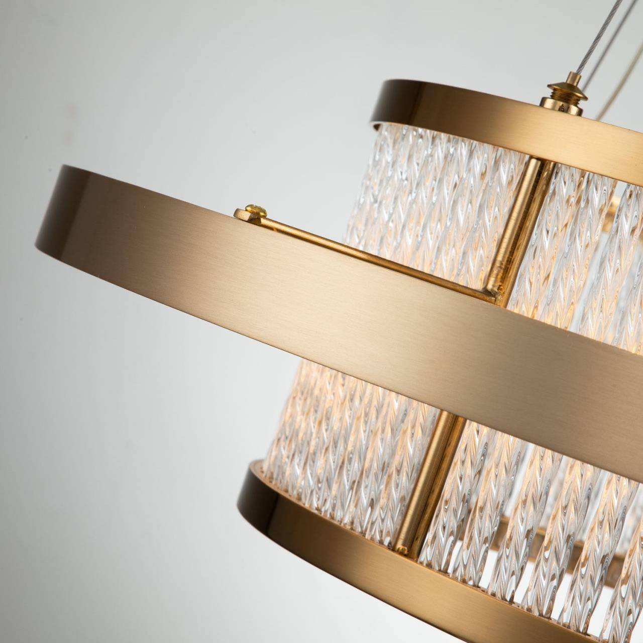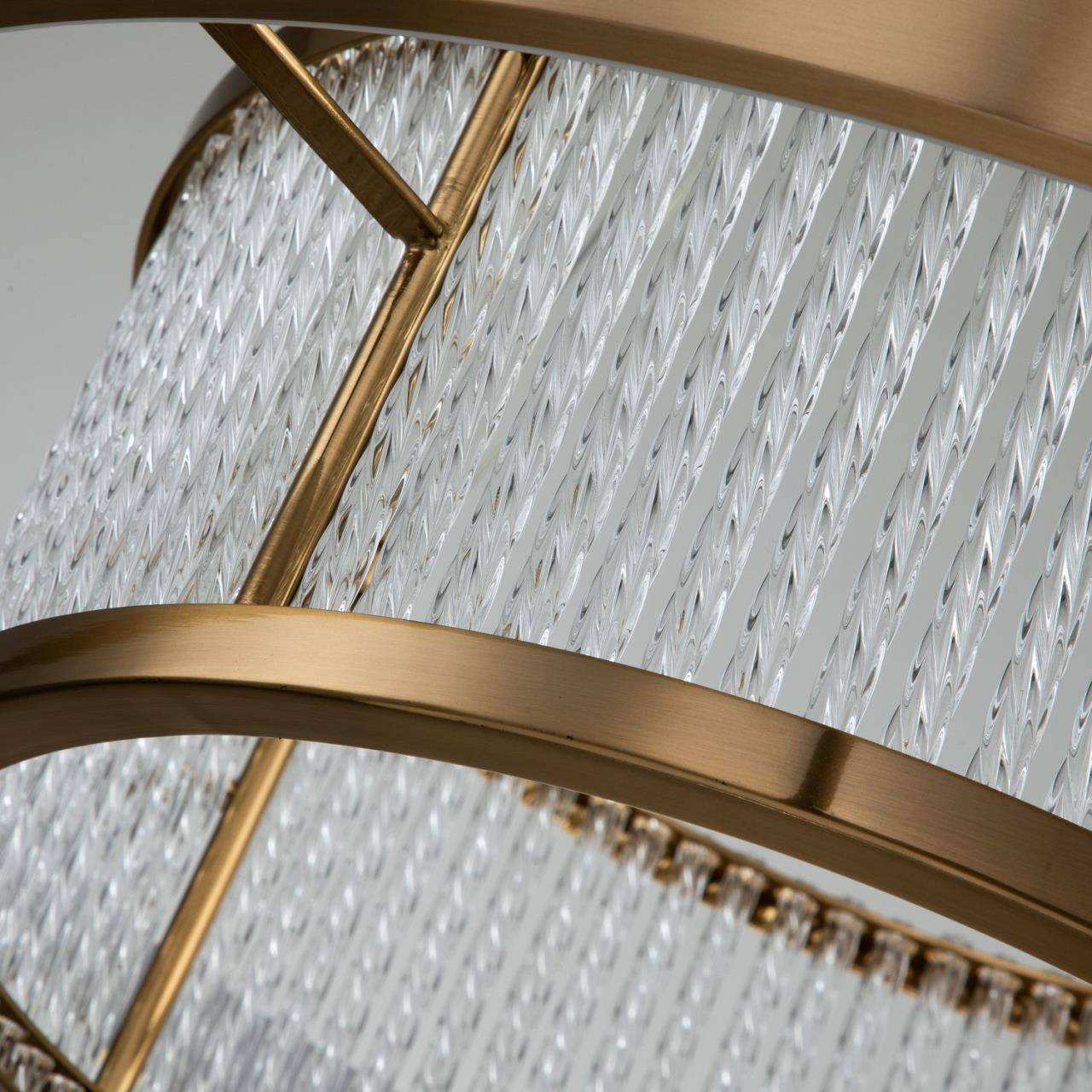Каркас цвета латуни, внутренний плафон выполнен из стеклянных спиралевидных трубочек