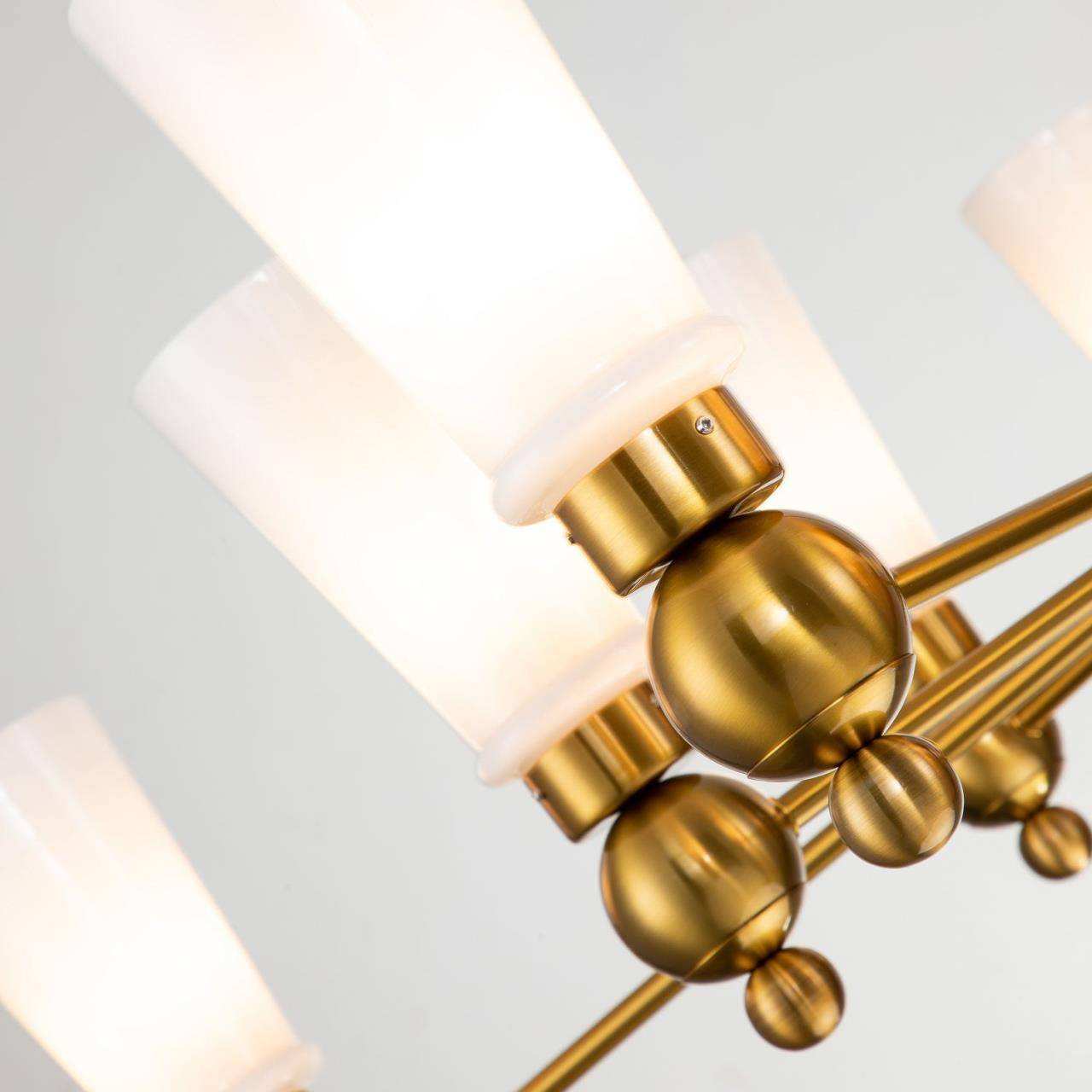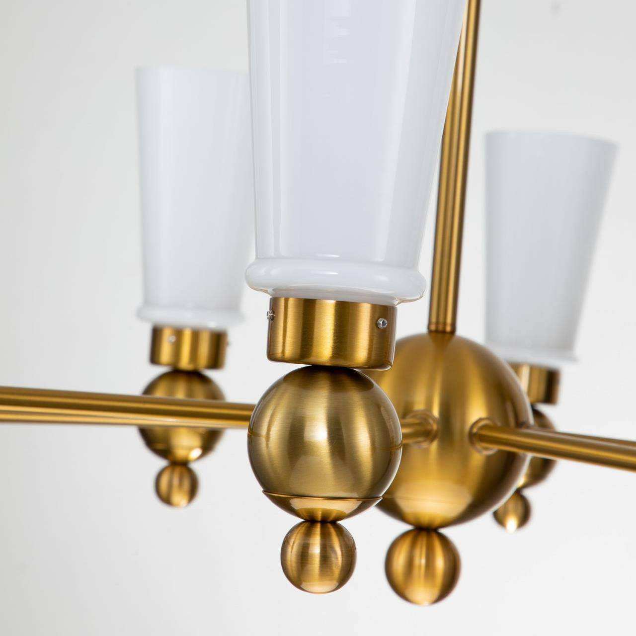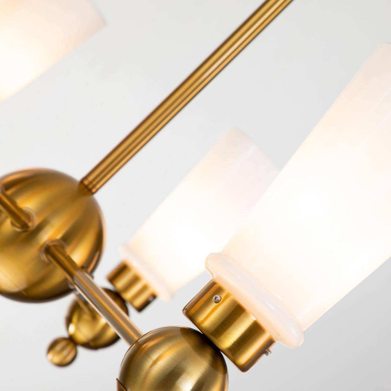 каркас цвета латуни, выдувные плафоны молочно-белого цвета