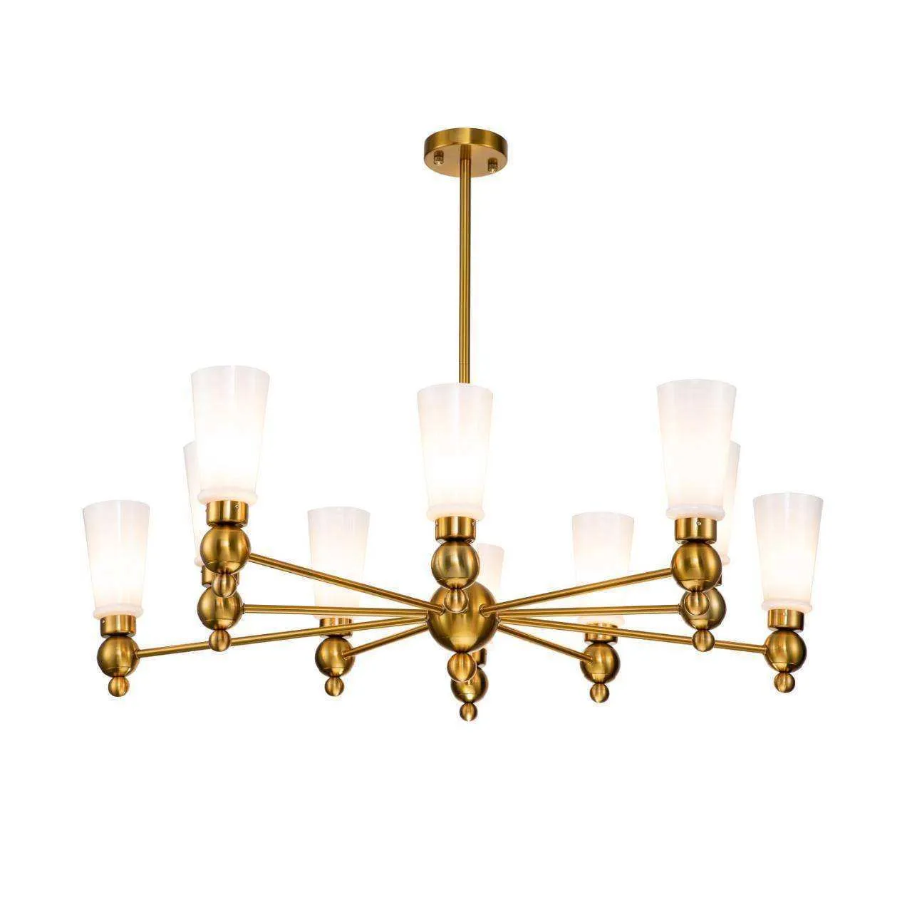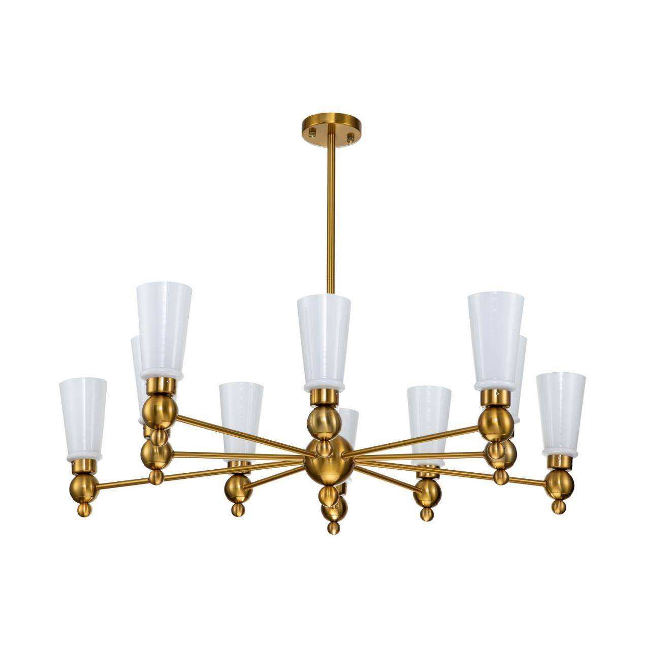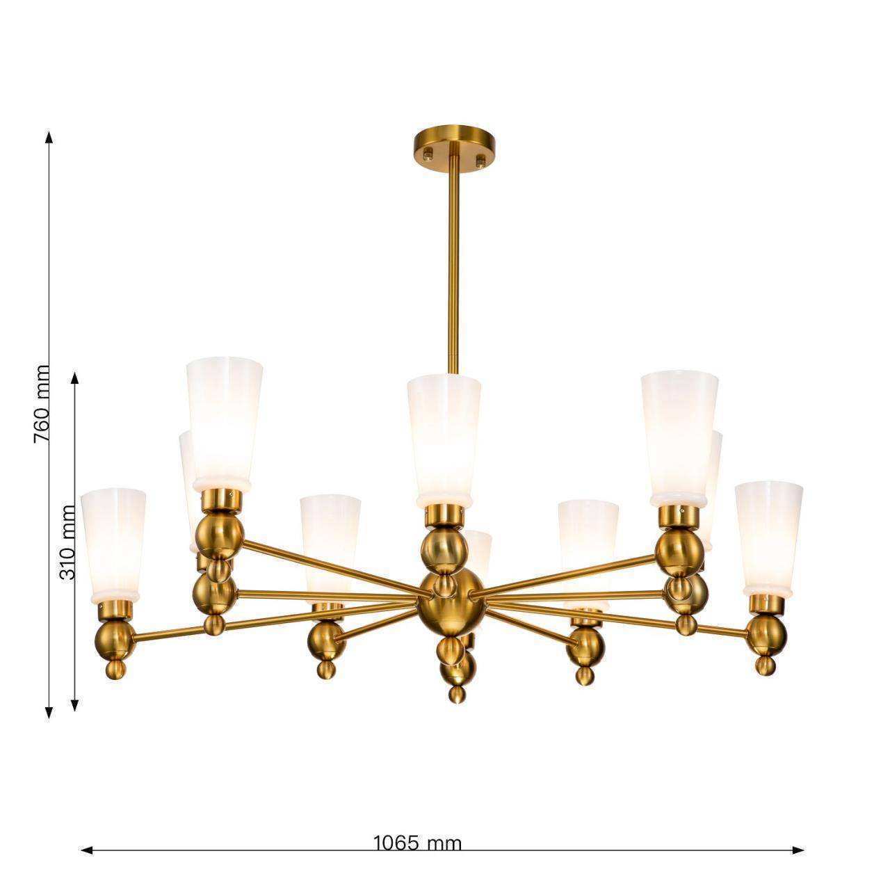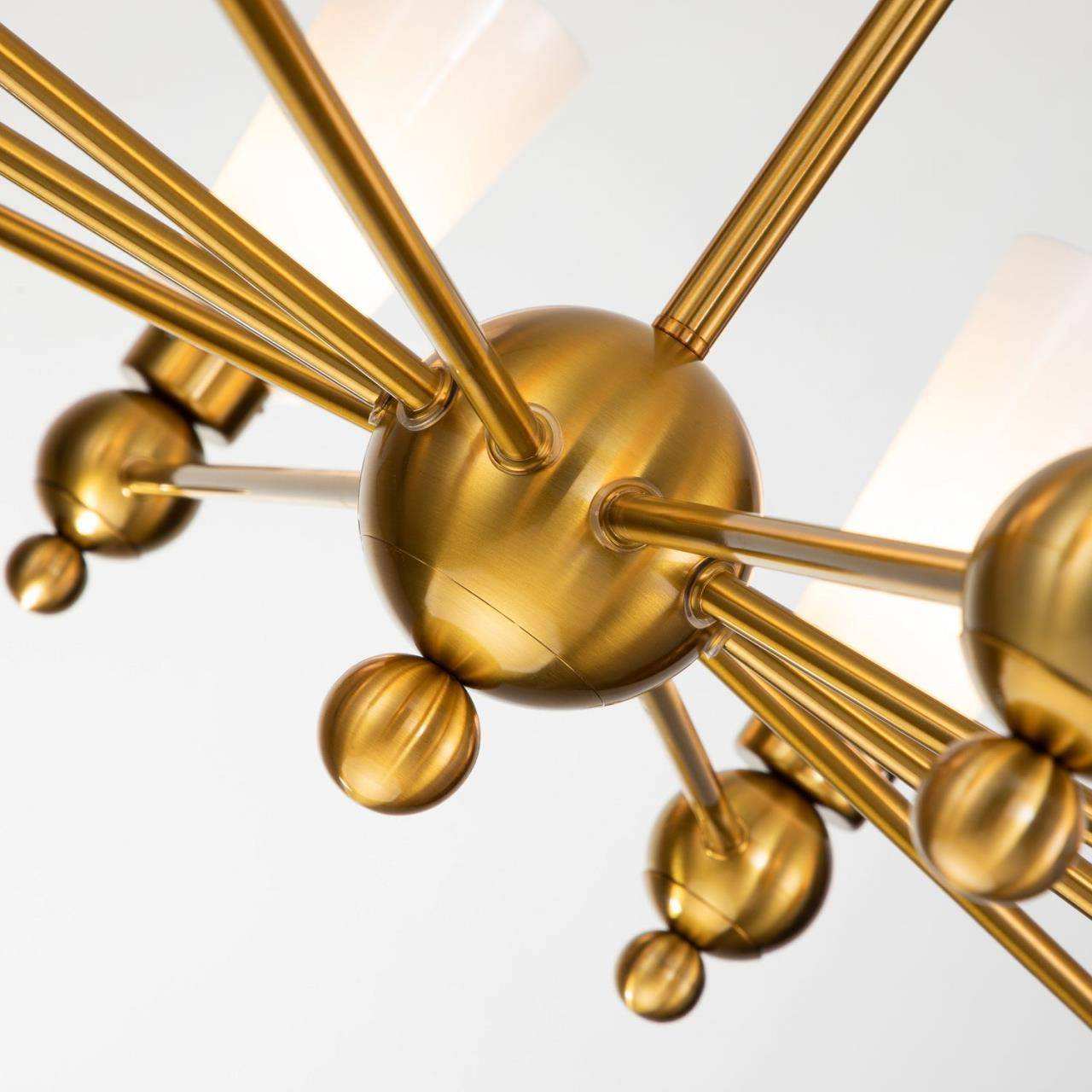каркас цвета латуни, выдувные плафоны молочно-белого цвета