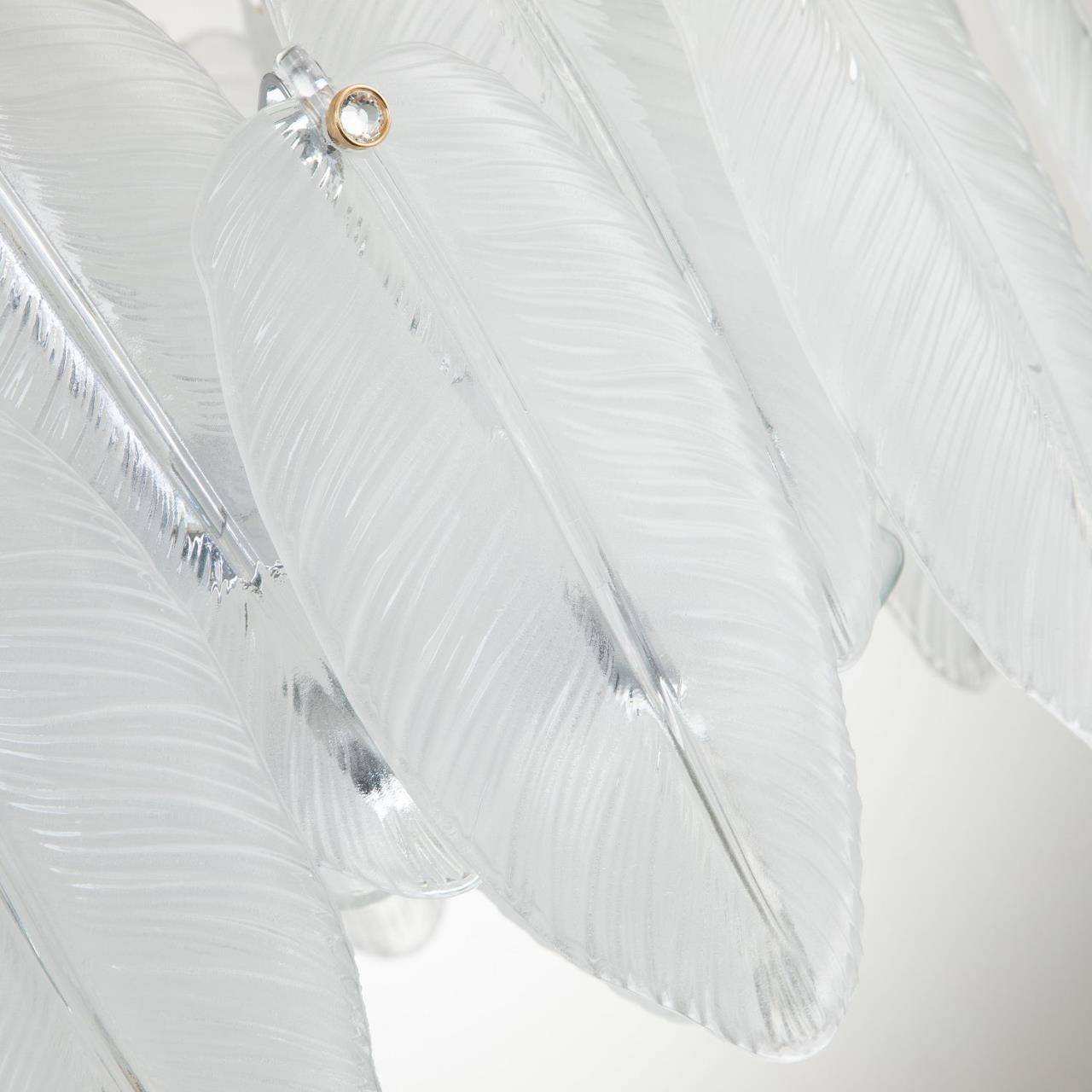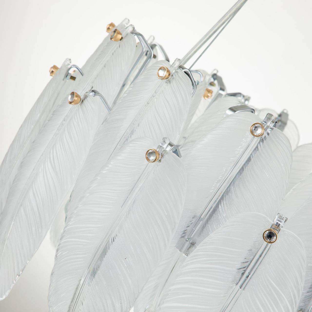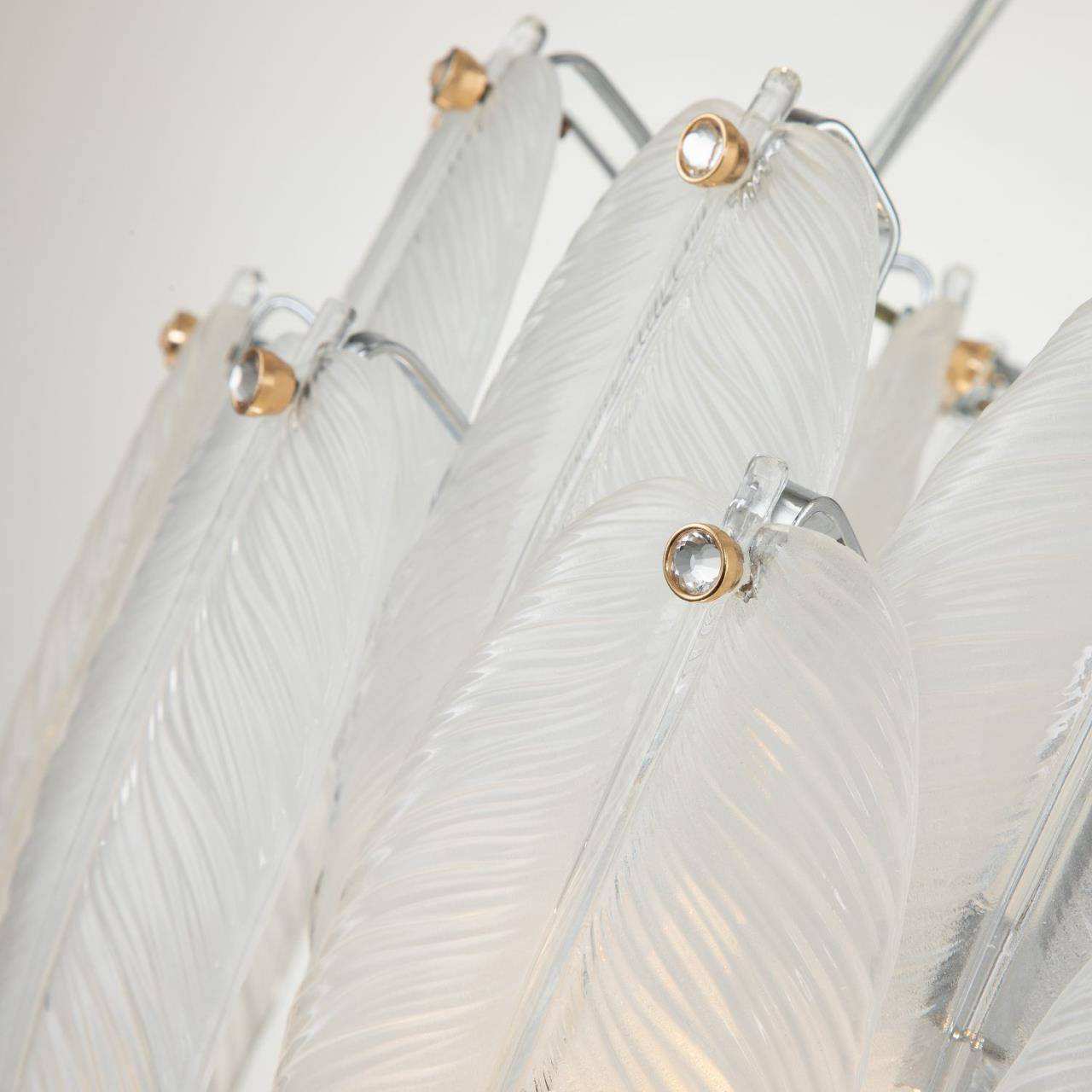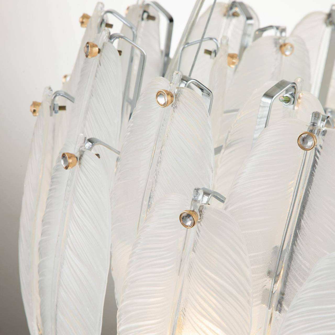 Каркас цвета хром, лепестки из полу-прозрачного стекла, декор в виде кристалла в золотом обрамлении на каждом лепестке