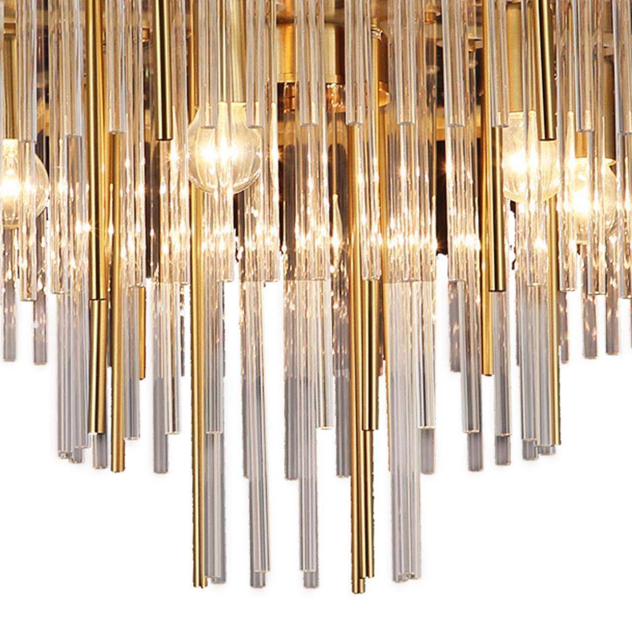 каркас цвета меди, каскад трубочек из прозрачного стекла и металла