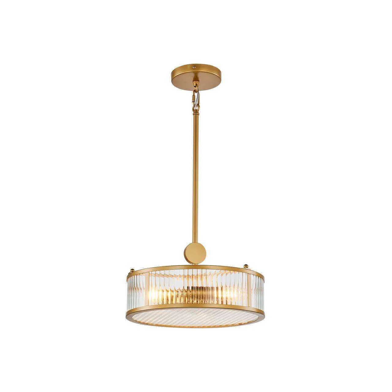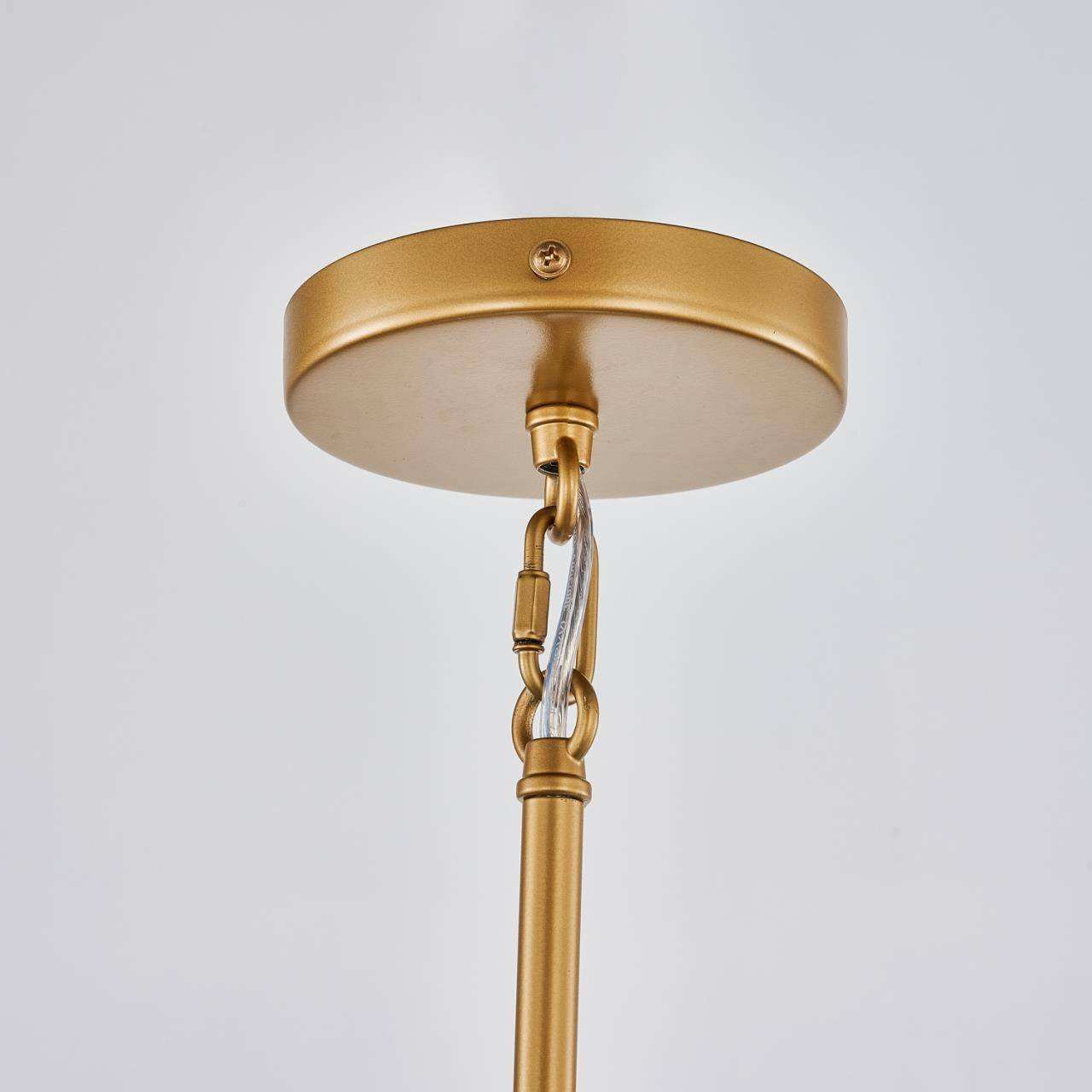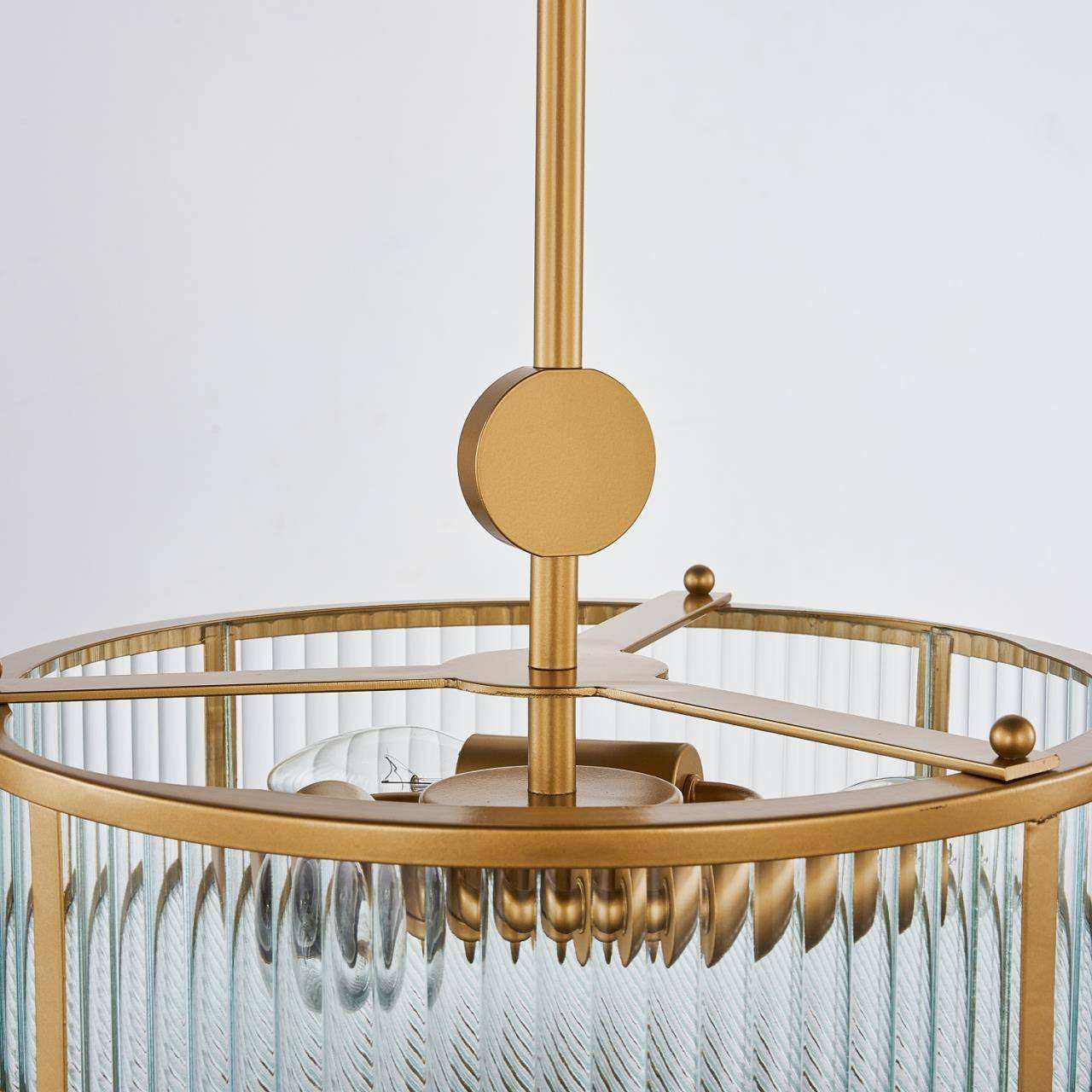 Каркас цвета золота, плафон из прозрачного рельефного стекла, круглый декоративный элемент цвета золота