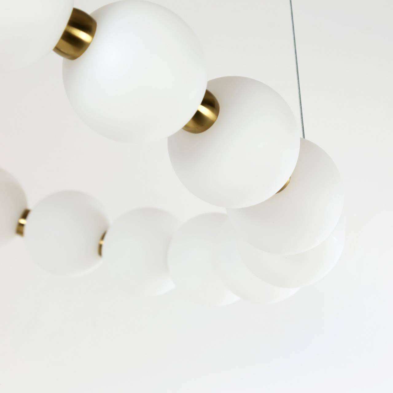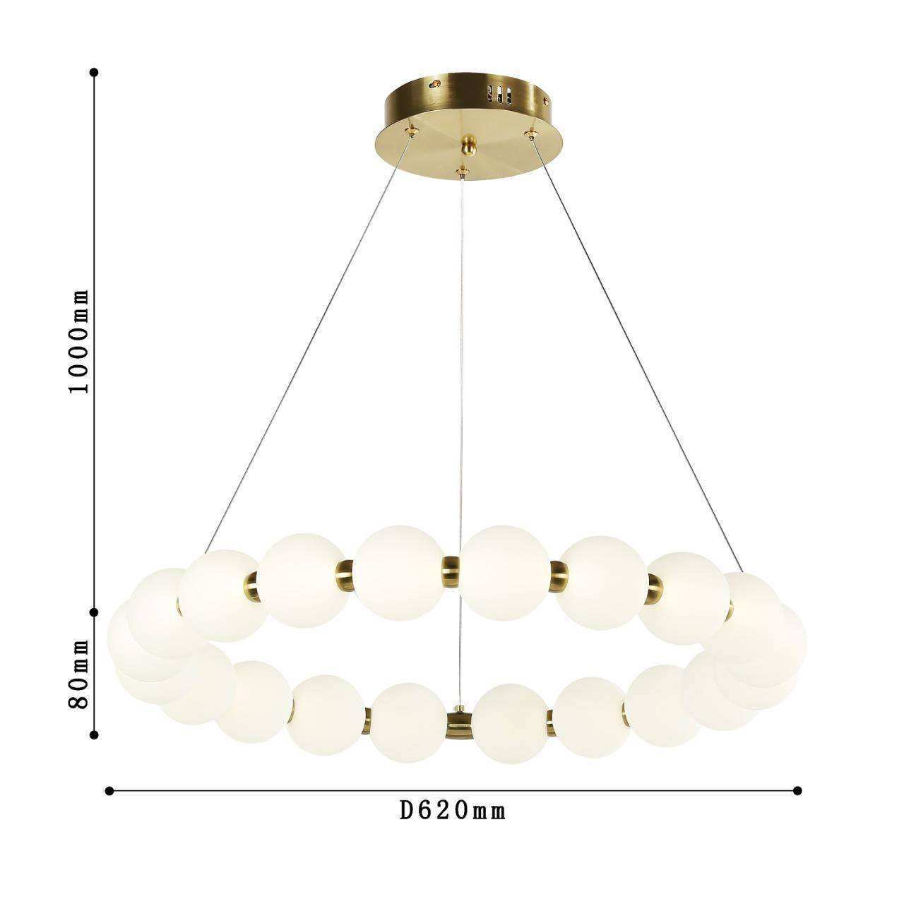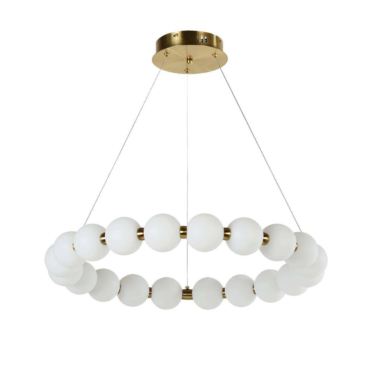 каркас цвета золота, плафон состоит из акриловых шаров белого цвета