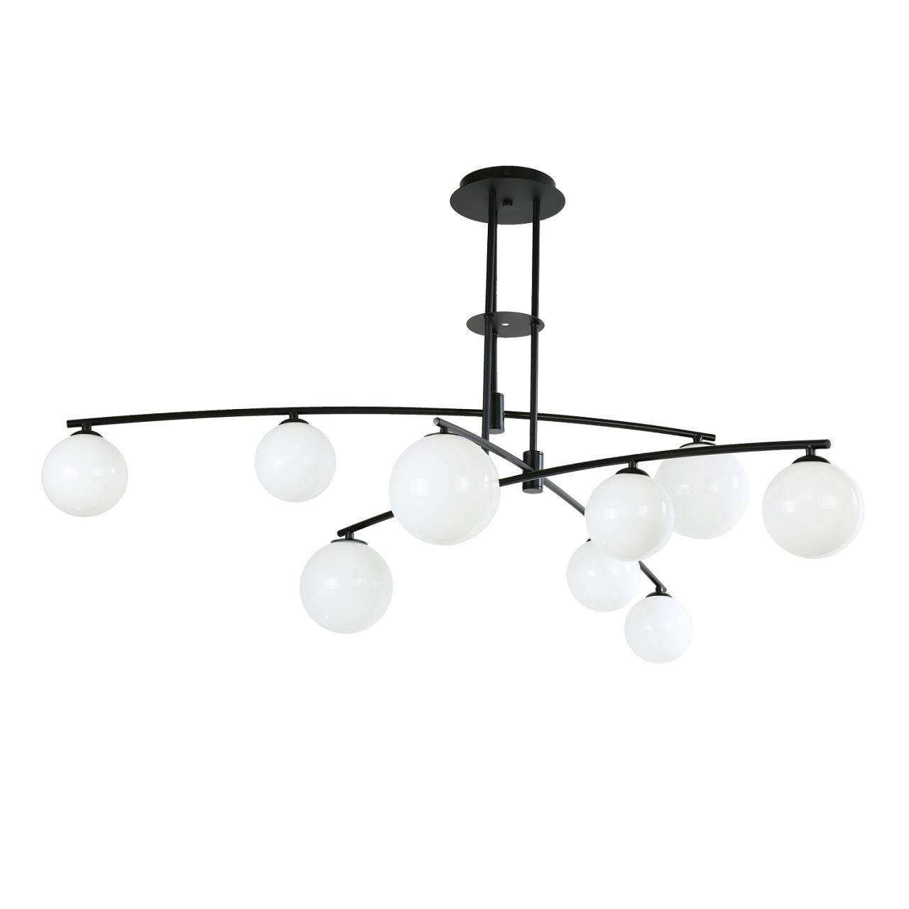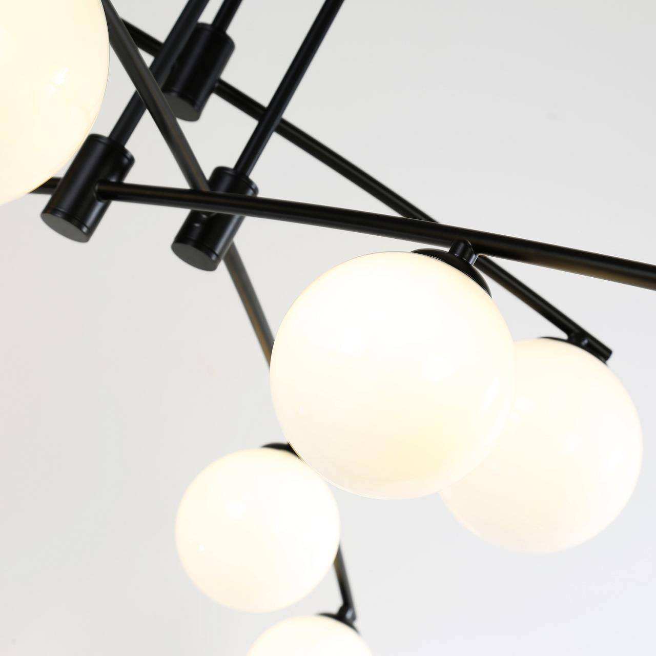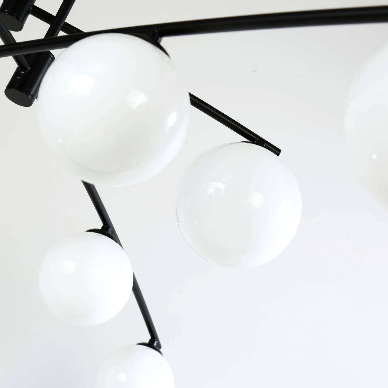 каркас матового черного цвета, плафоны из выдувного белого стекла дуплекс, лампу G9 можно менять