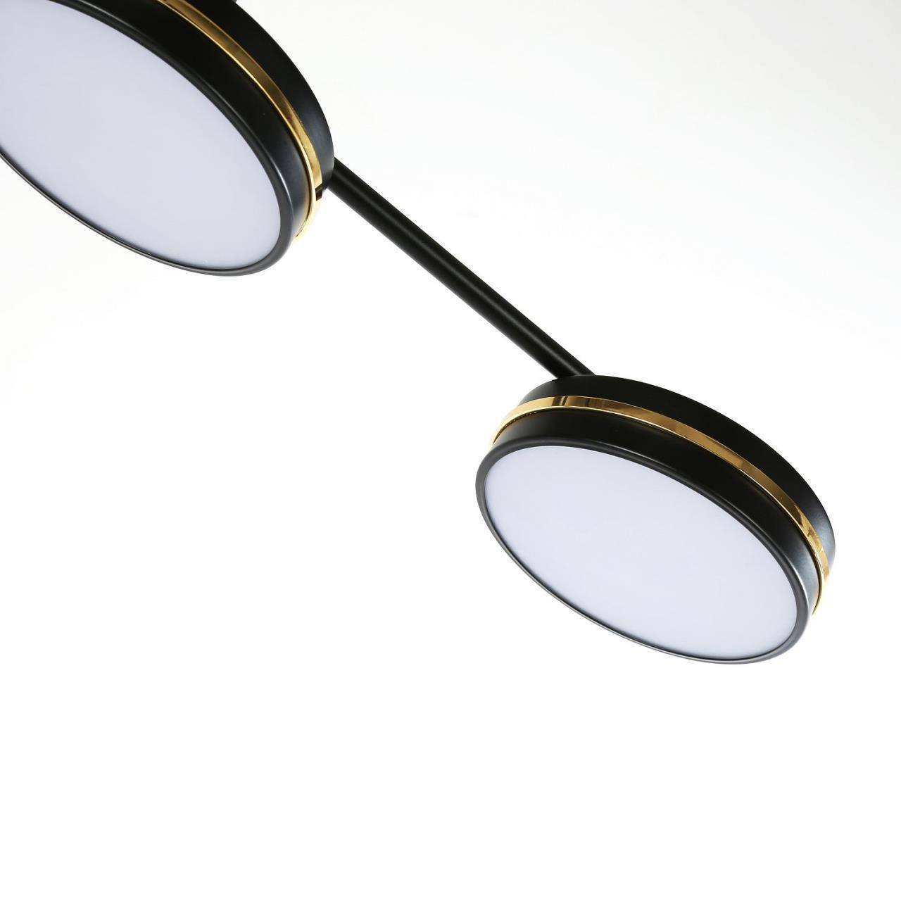 каркас матового черного цвета, рассеиватели из белого акрила, декоративные линии цвета золота