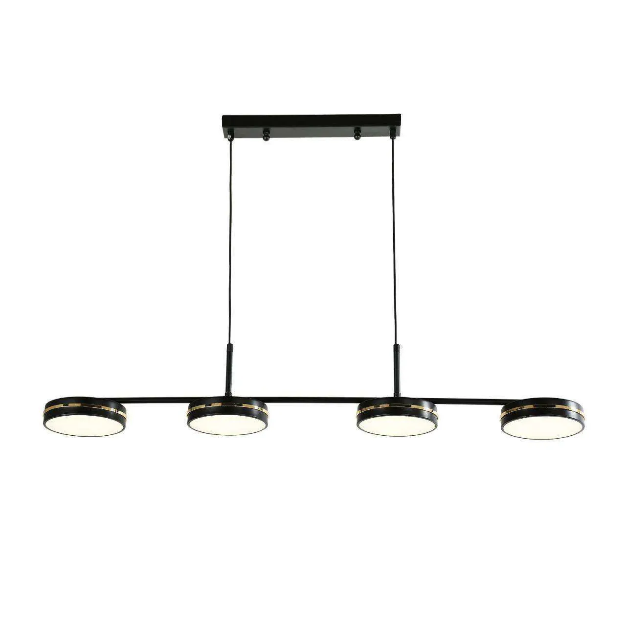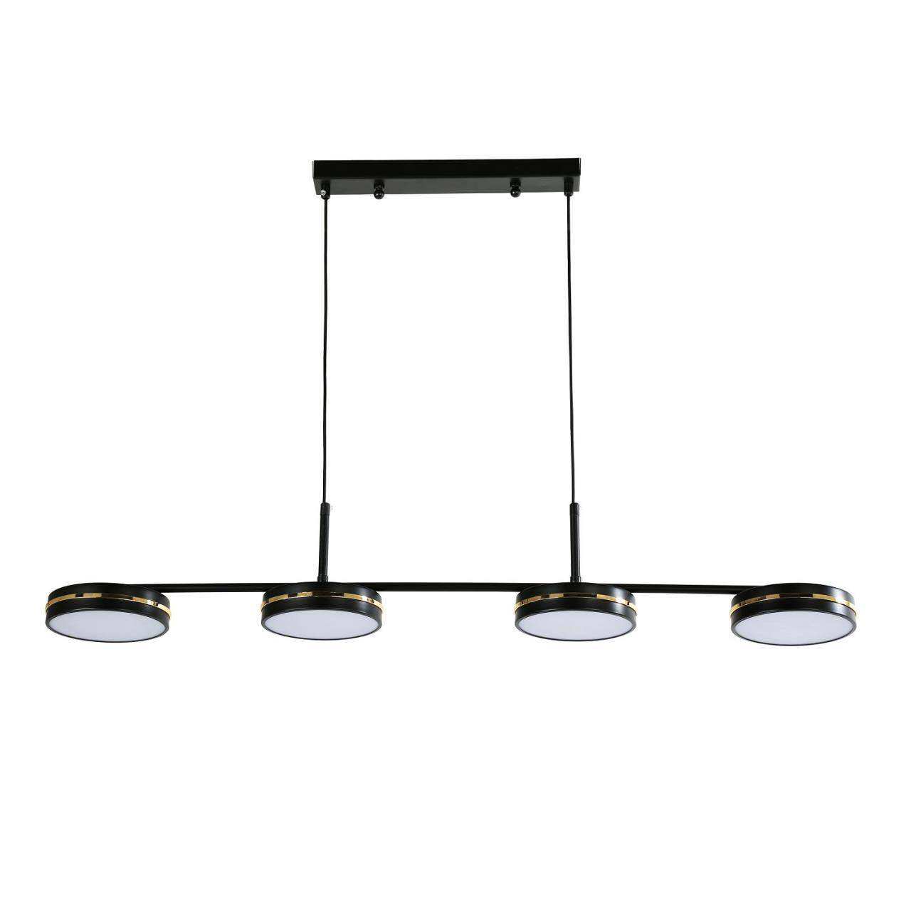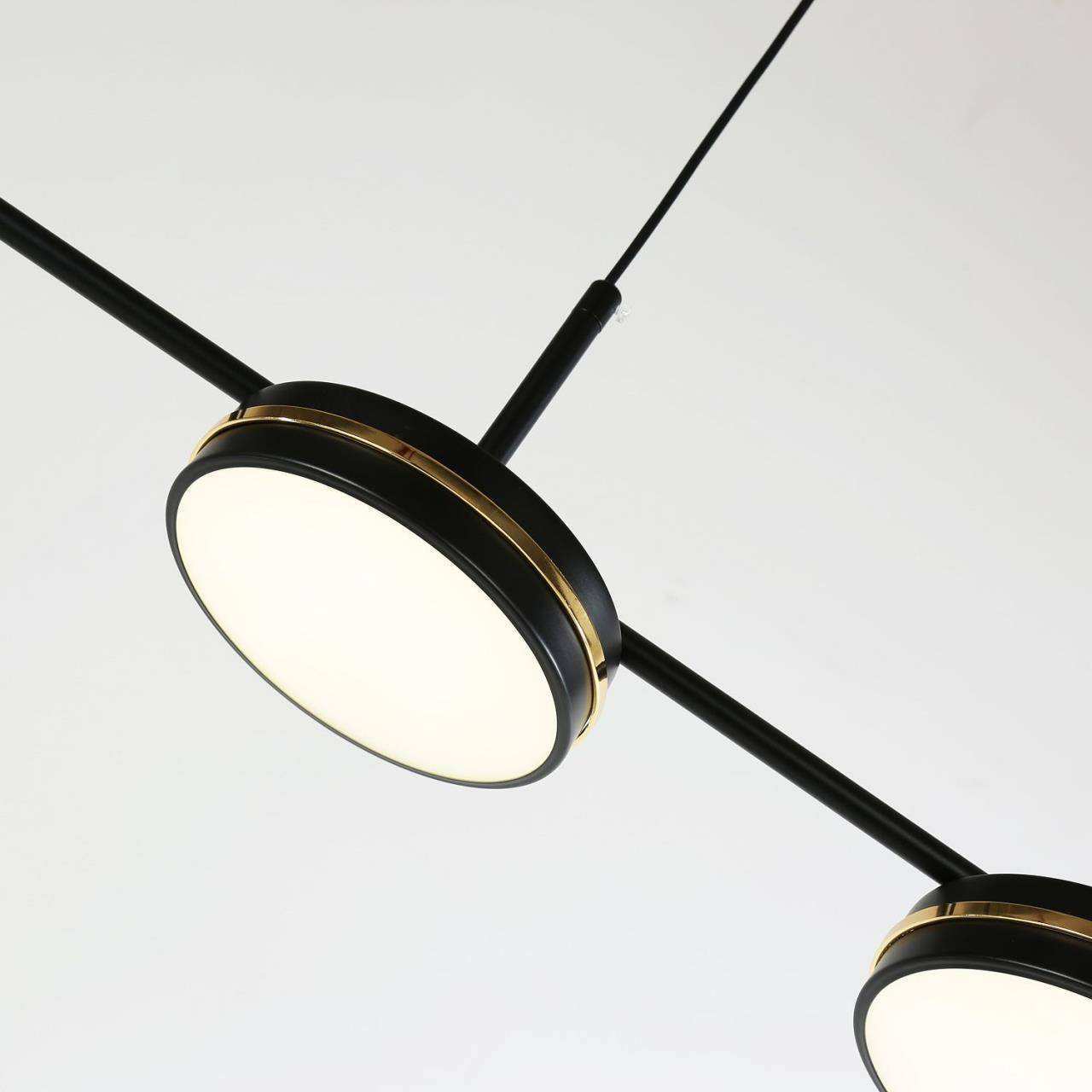 Каркас матового черного цвета, рассеиватели из белого акрила, декоративные линии цвета золота