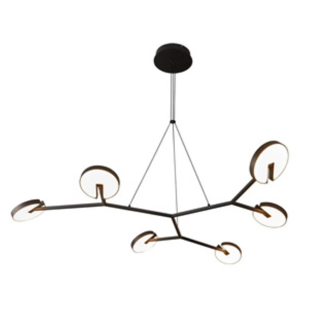 Потолочная люстра - матовые черные "ветви" светильников украшены "бутонами" плафонов, специальная декоративная щель в плафонах и встроенный поворотный