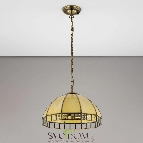 Citilux Шербург-1 CL440131 Люстра витражная подвесная Бронза — Люстра подвесная Шербург-1 Бронза Старая + Бежевый Диаметр 40, 5 см.