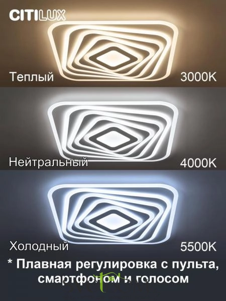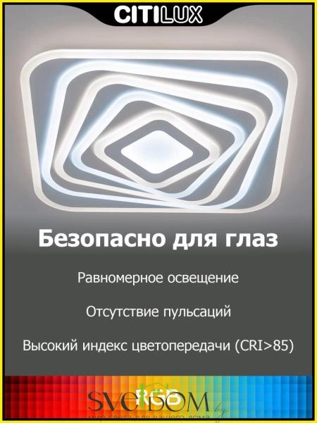 Citilux Триест Смарт CL737A45E RGB Умная люстра — Светодиодная потолочная люстра Триест Смарт с голосовым управлением является ярким представителем современных УМНЫХ хай-тек светильников экосистемы SMART.
