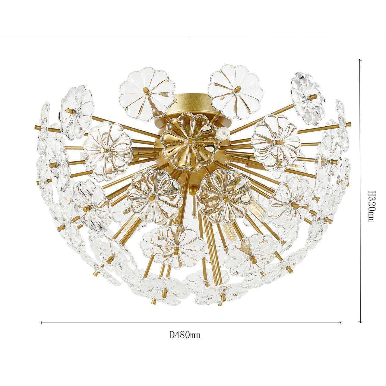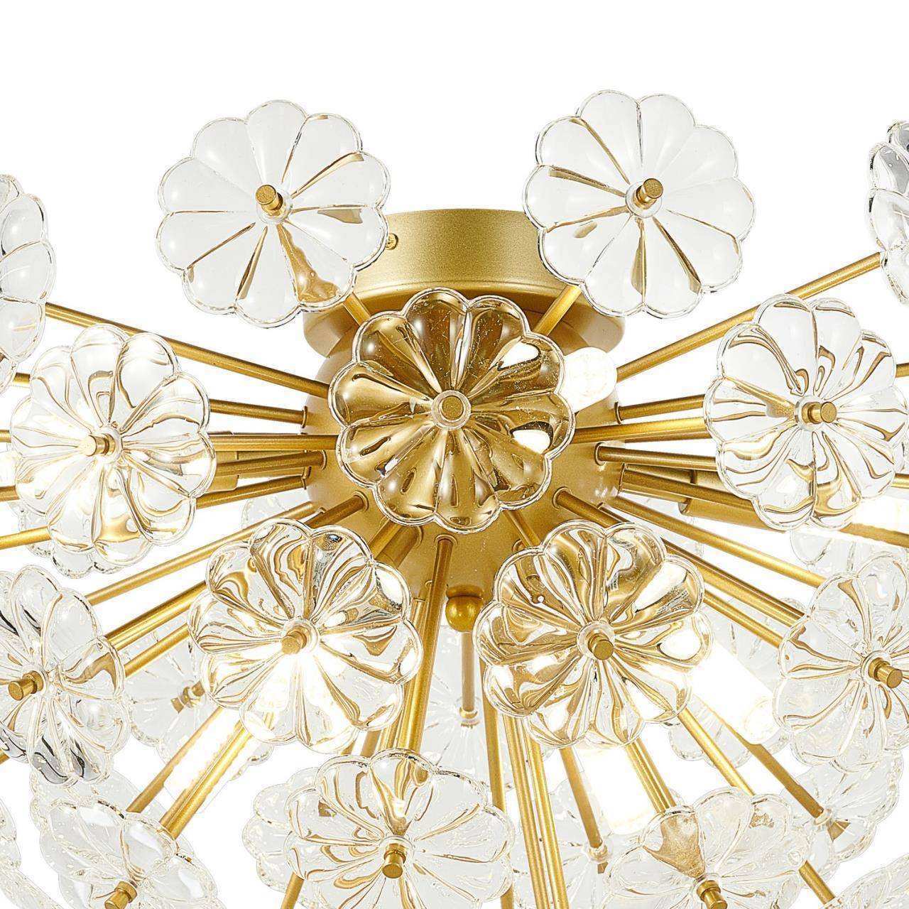 Каркас золотого цвета, декоративные элементы из прозрачного стекла