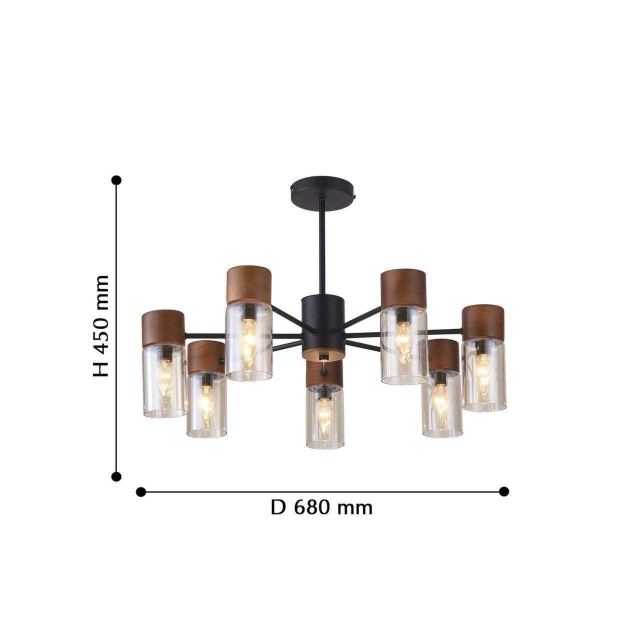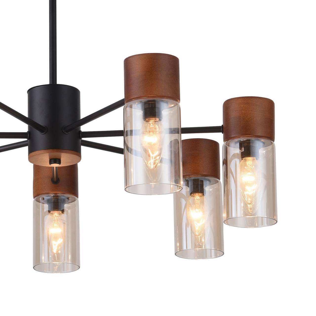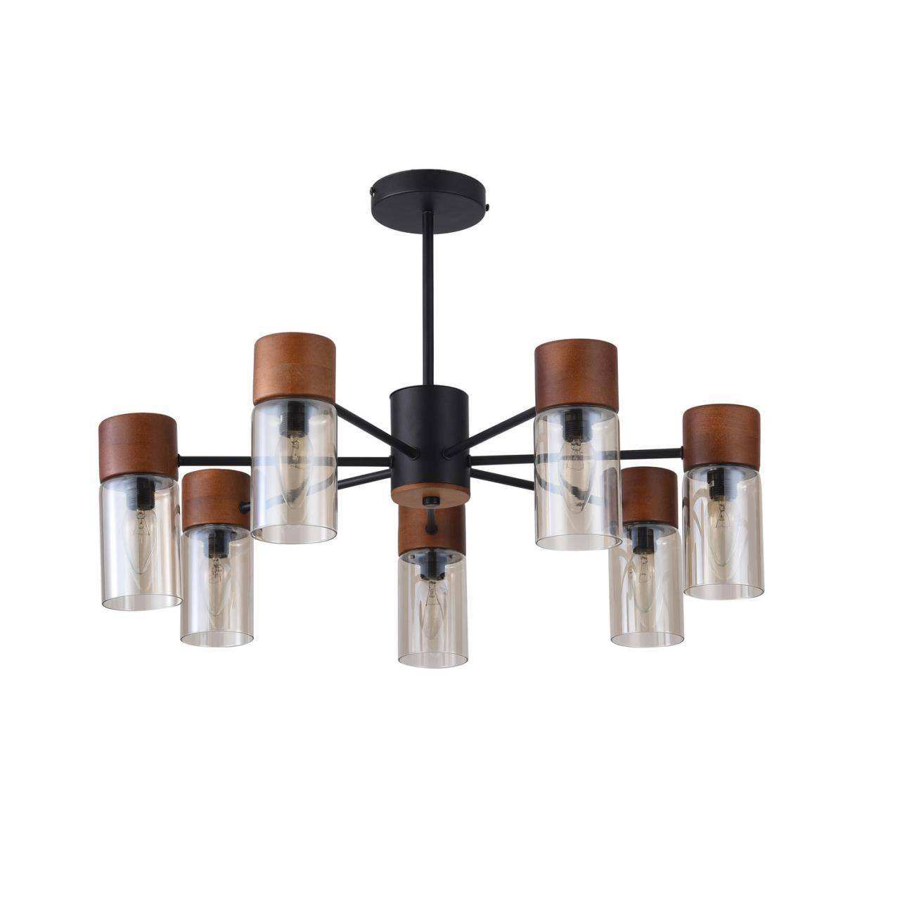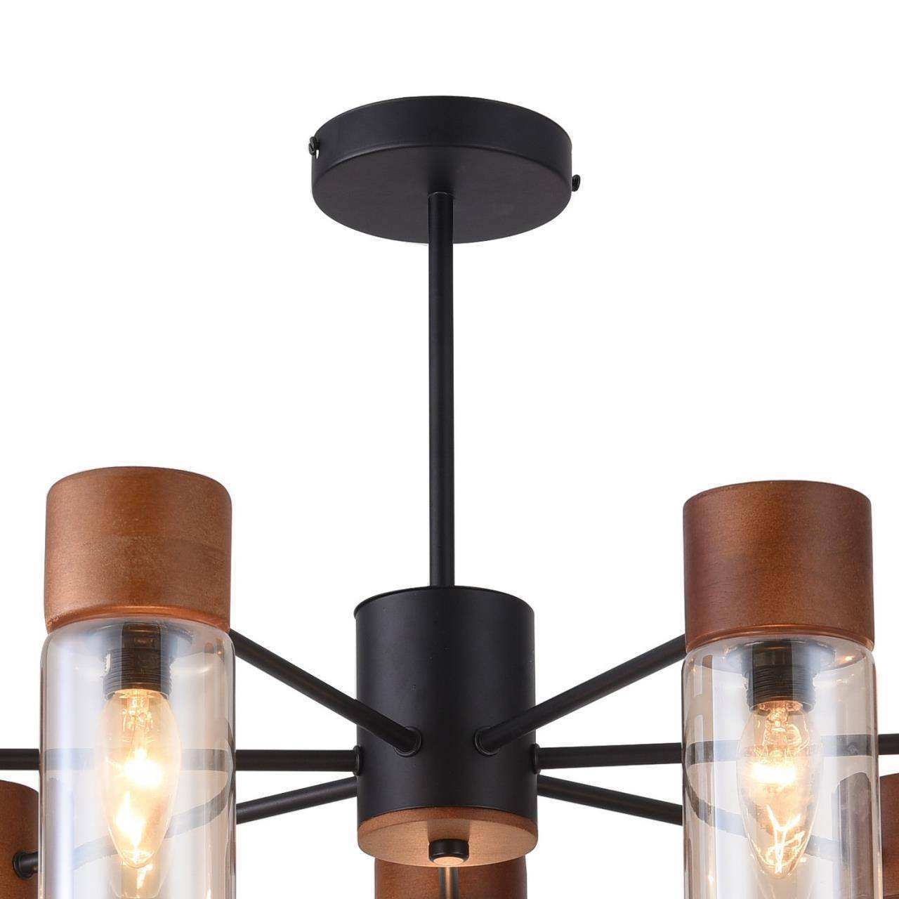 Каркас черного цвета с декоративными элементами из дерева, плафон из прозрачного стекла коньячного оттенка
