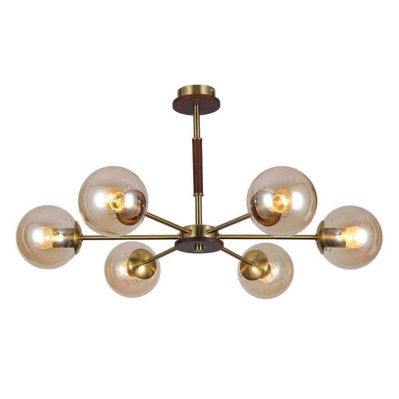 каркас медного цвета, плафоны из стекла янтарного цвета