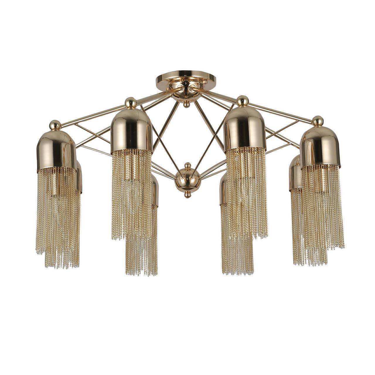 Каркас золотого цвета, купола плафонов украшены каскадом тонких золотых цепочек