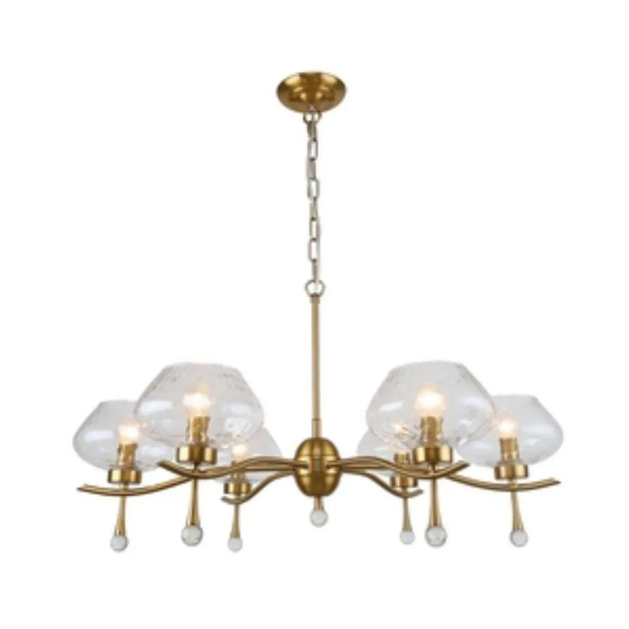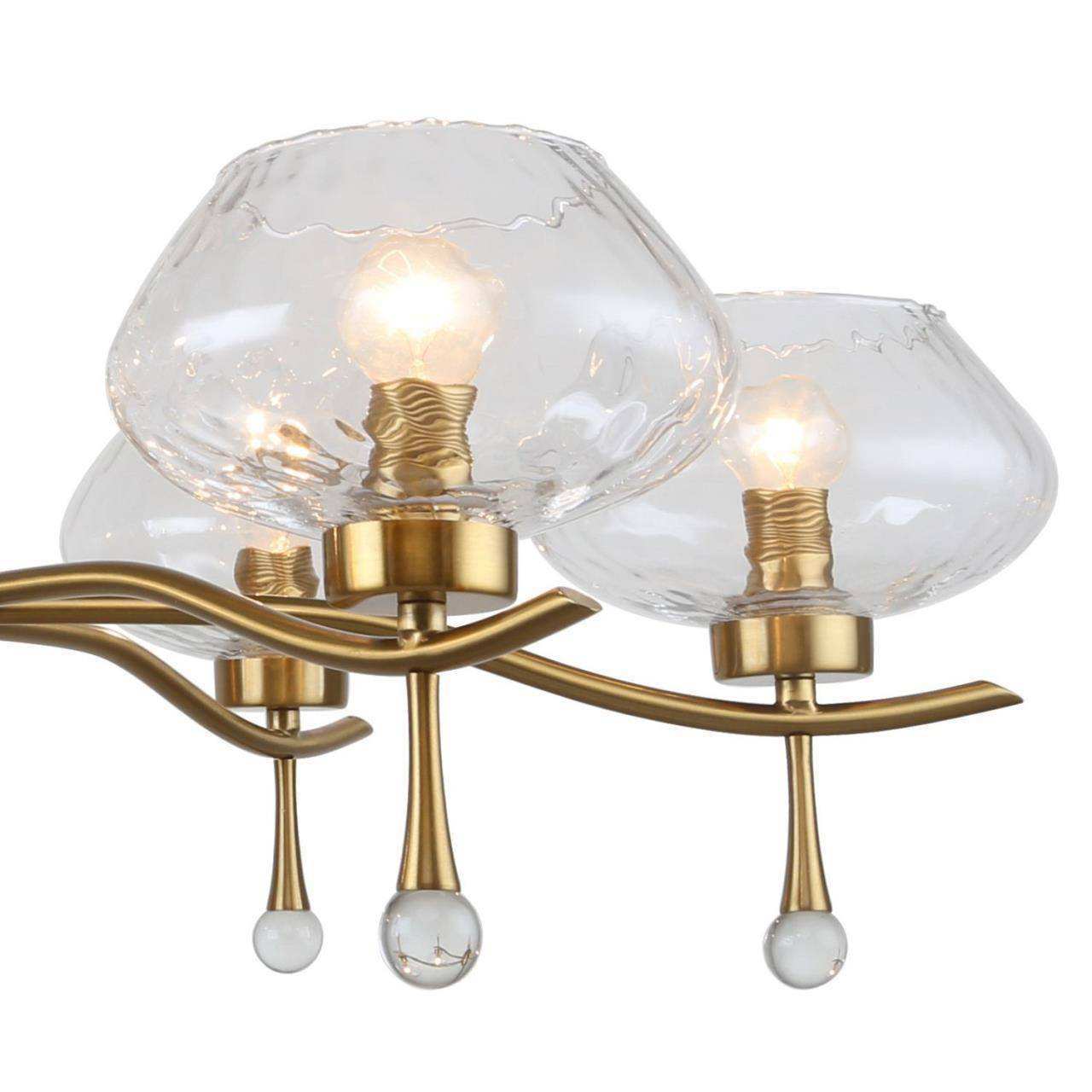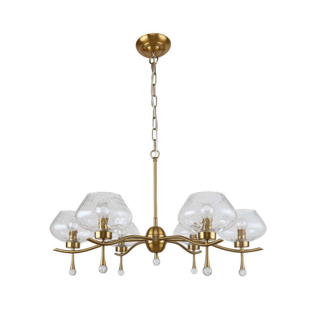 Каркас цвета латунь, плафоны из прозрачного стекла, декоративные элементы из прозрачного стекла