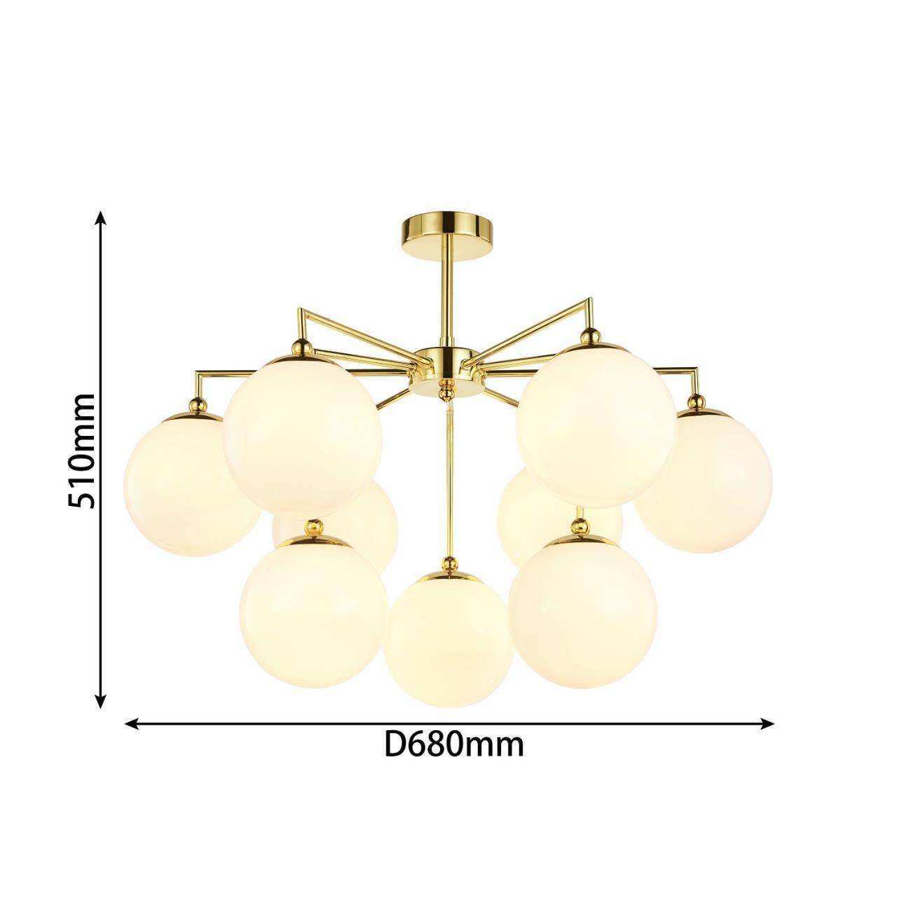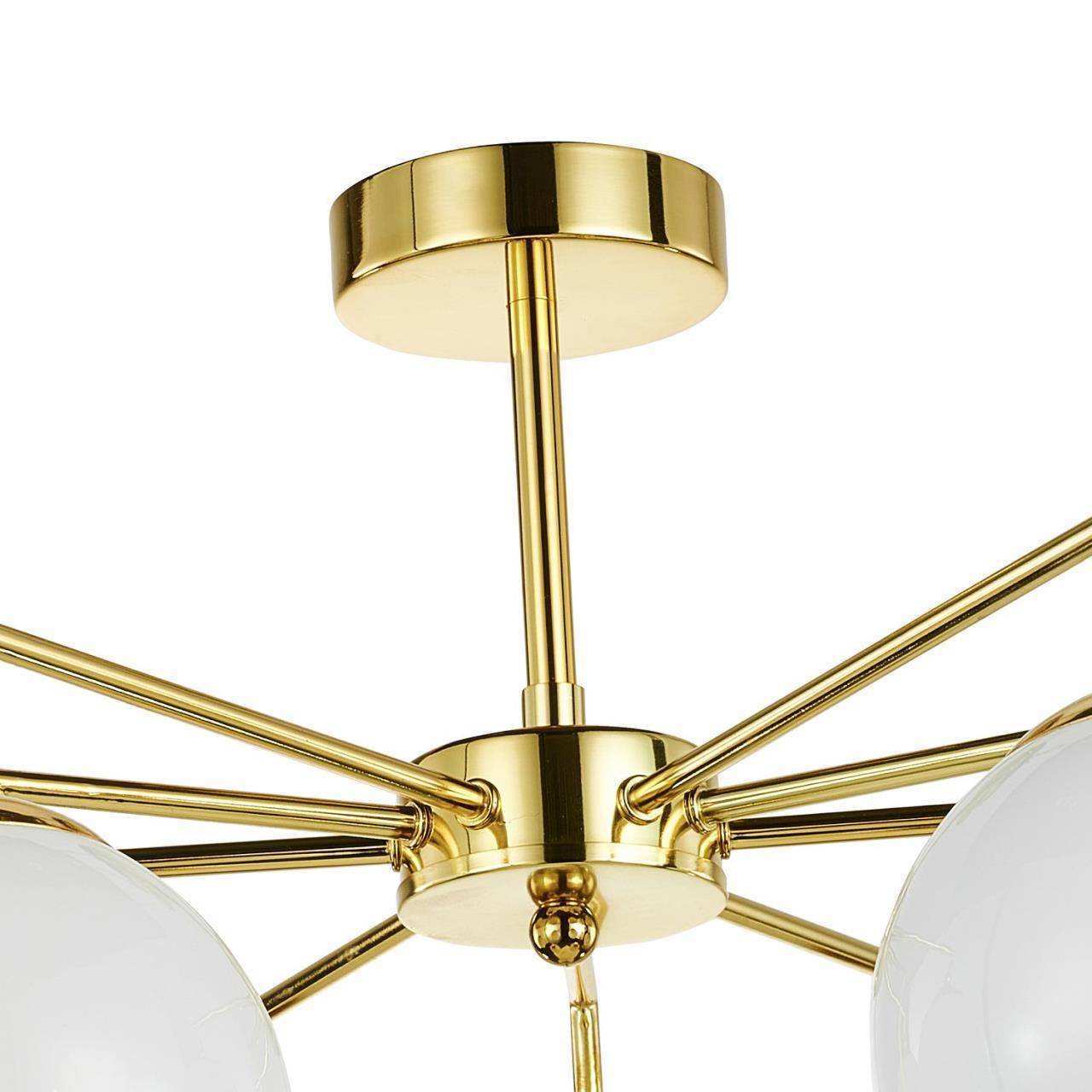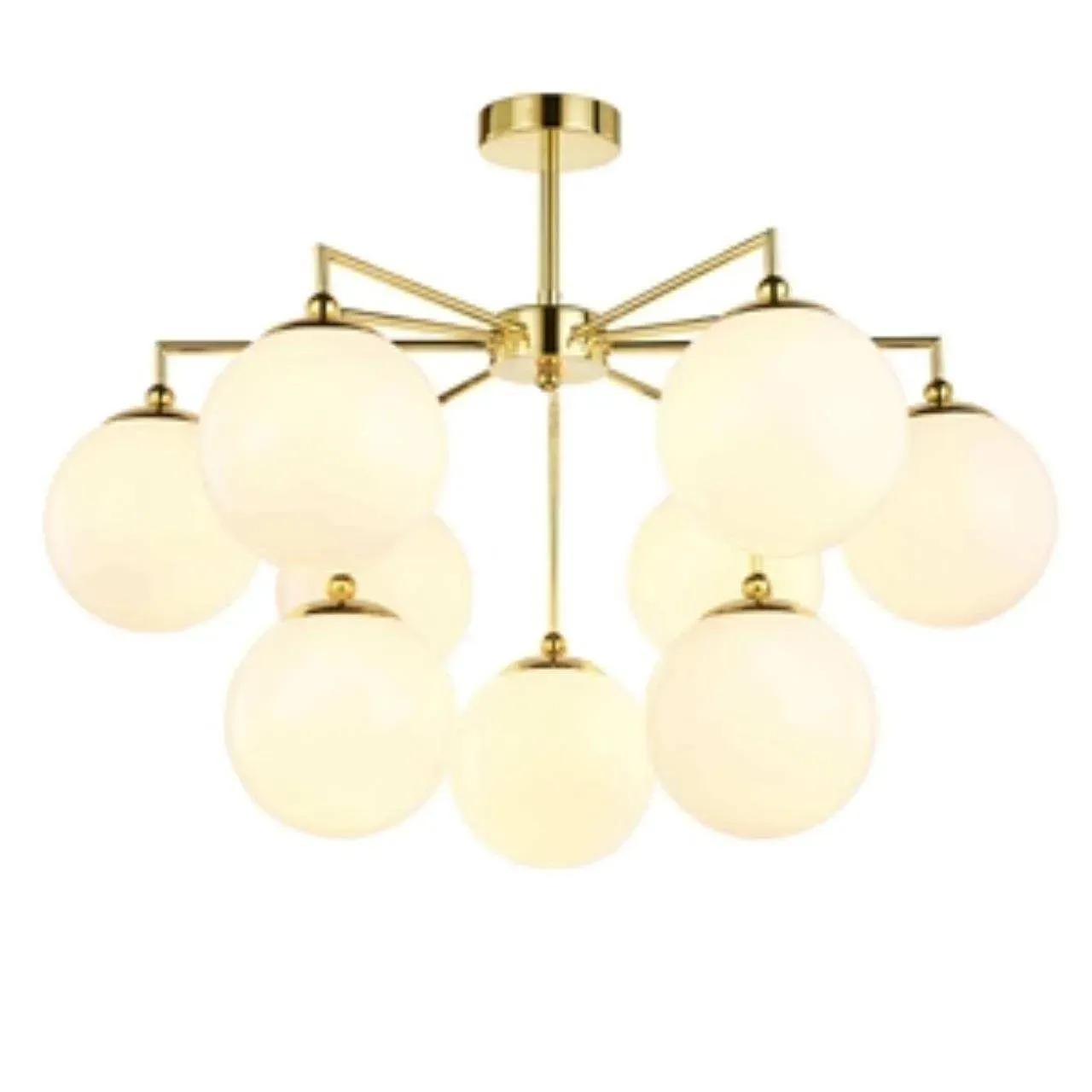 Каркас золотого цвета, плафоны из белого выдувного стекла
