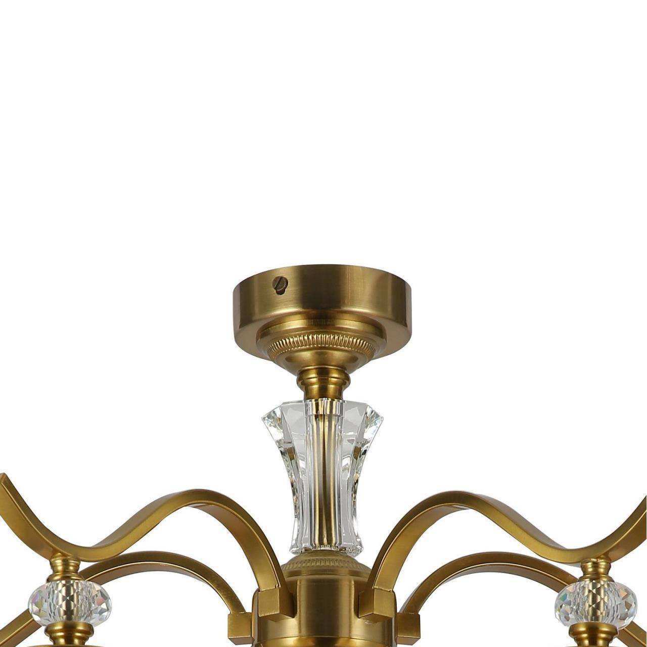 каркас цвета латунь, хрустальный декор, плафон из ткани жемчужно-кремового оттенка