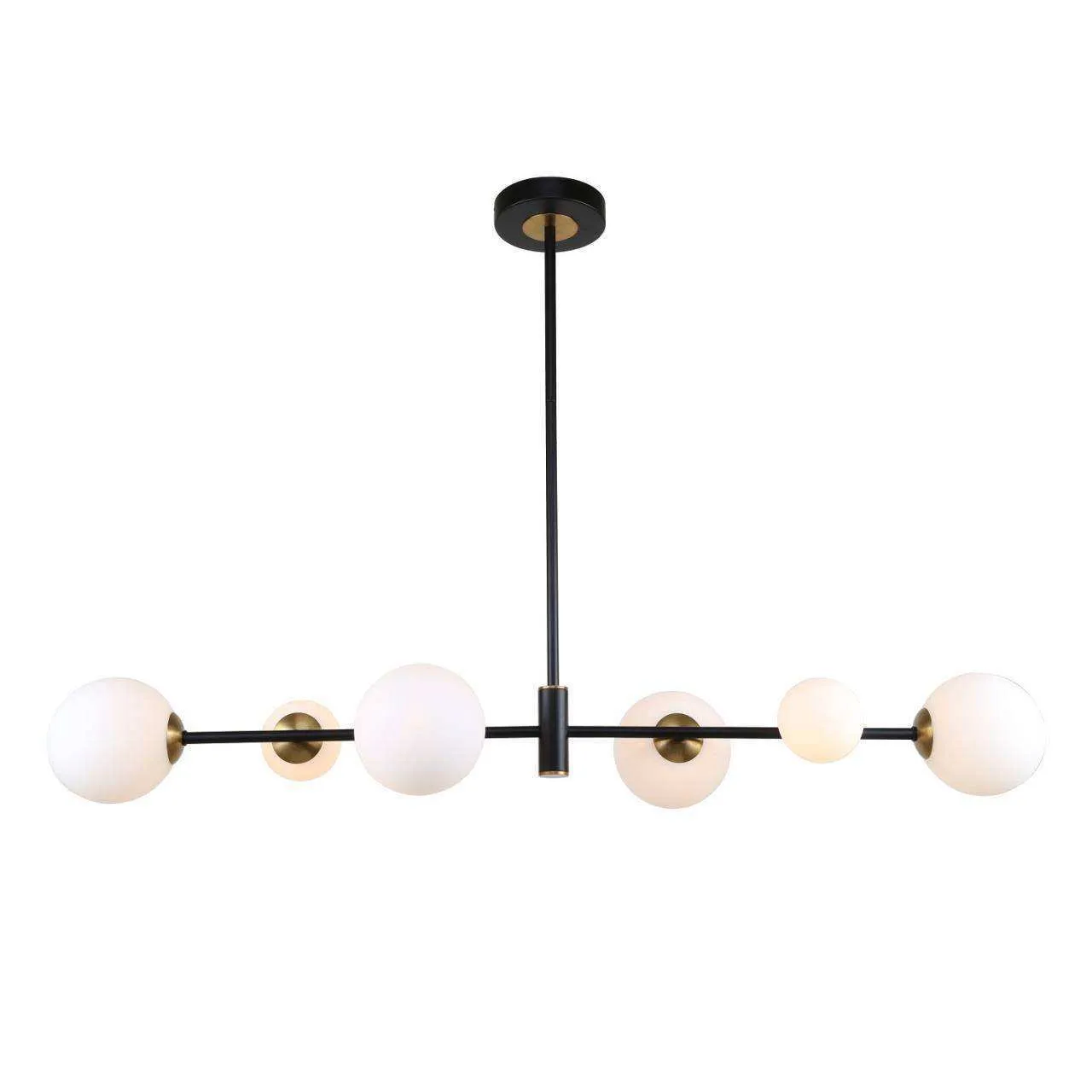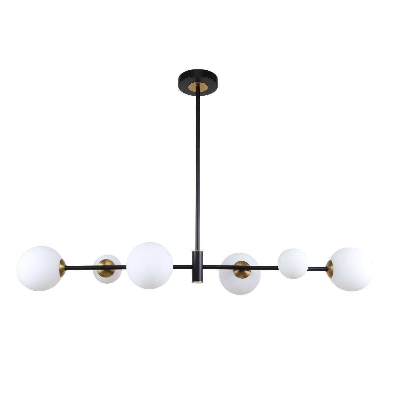 Черный каркас с декоративными элементами цвета латуни, плафоны из белого стекла, лампу g9 можно менять