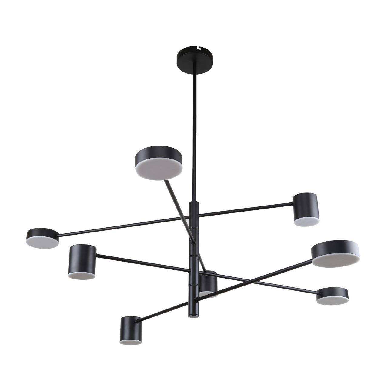 Каркас черного цвета, плафоны разных форм и размеров, рассеиватели из белого акрила