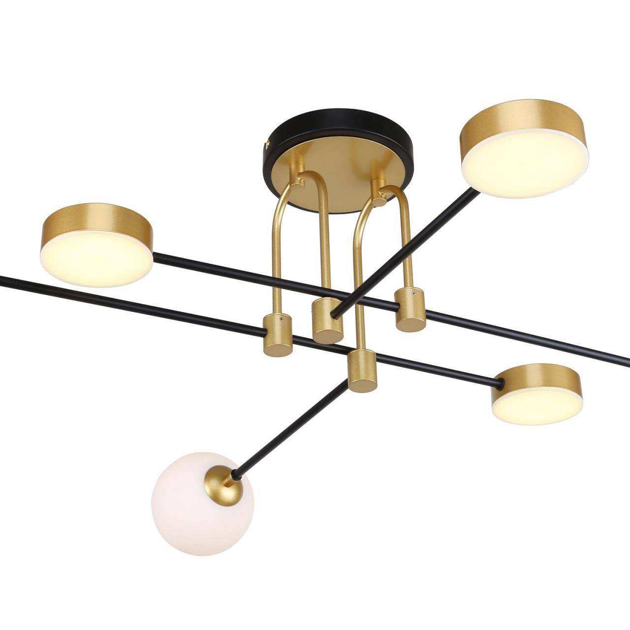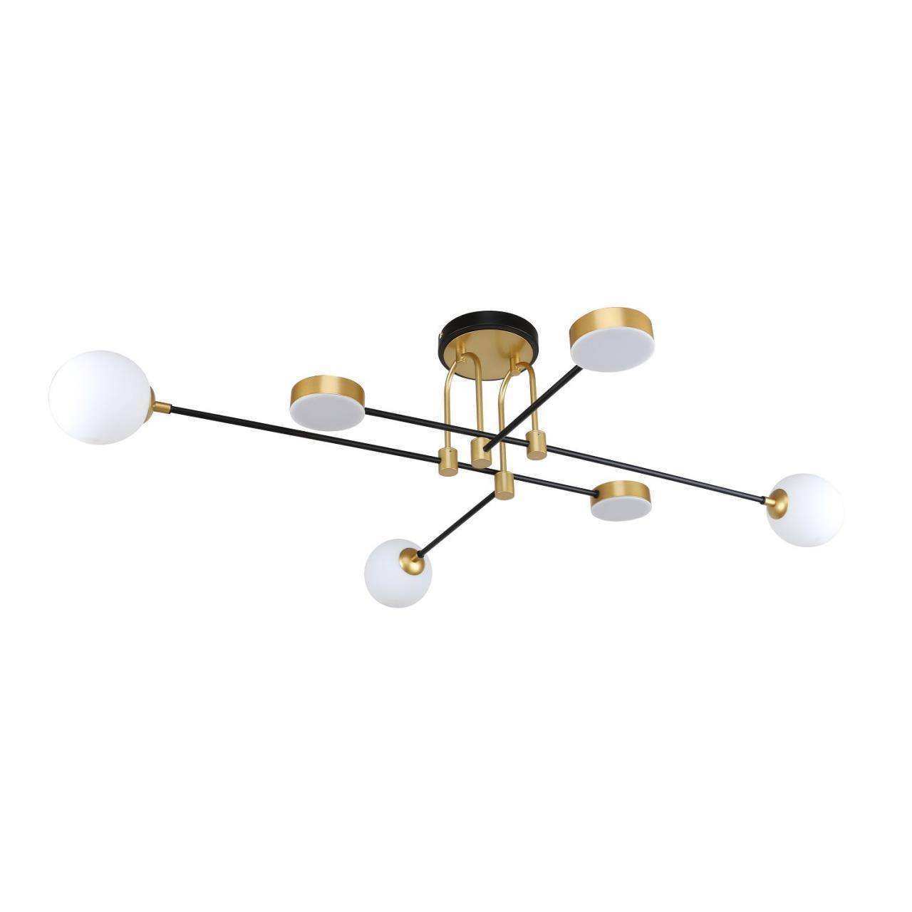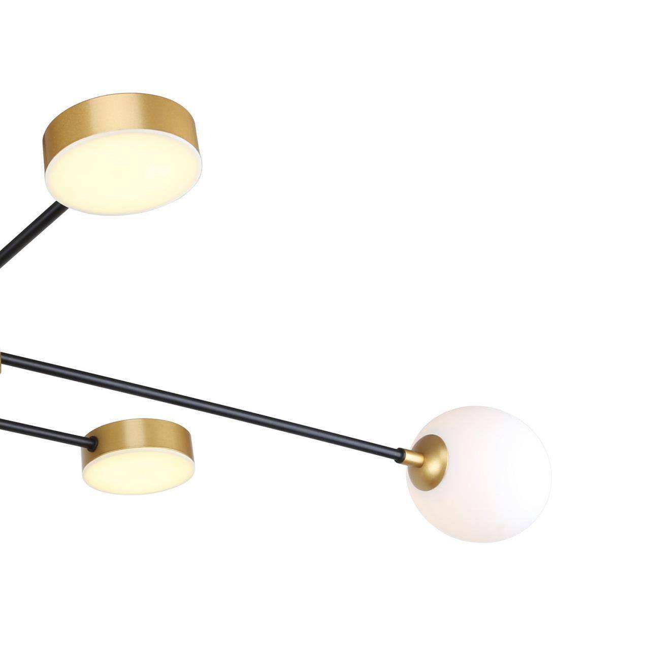 каркас черного цвета с декоративными элементами цвета золота, плафоны из белого стекла, рассеиватели из белого акрила, лампу G9 можно менять