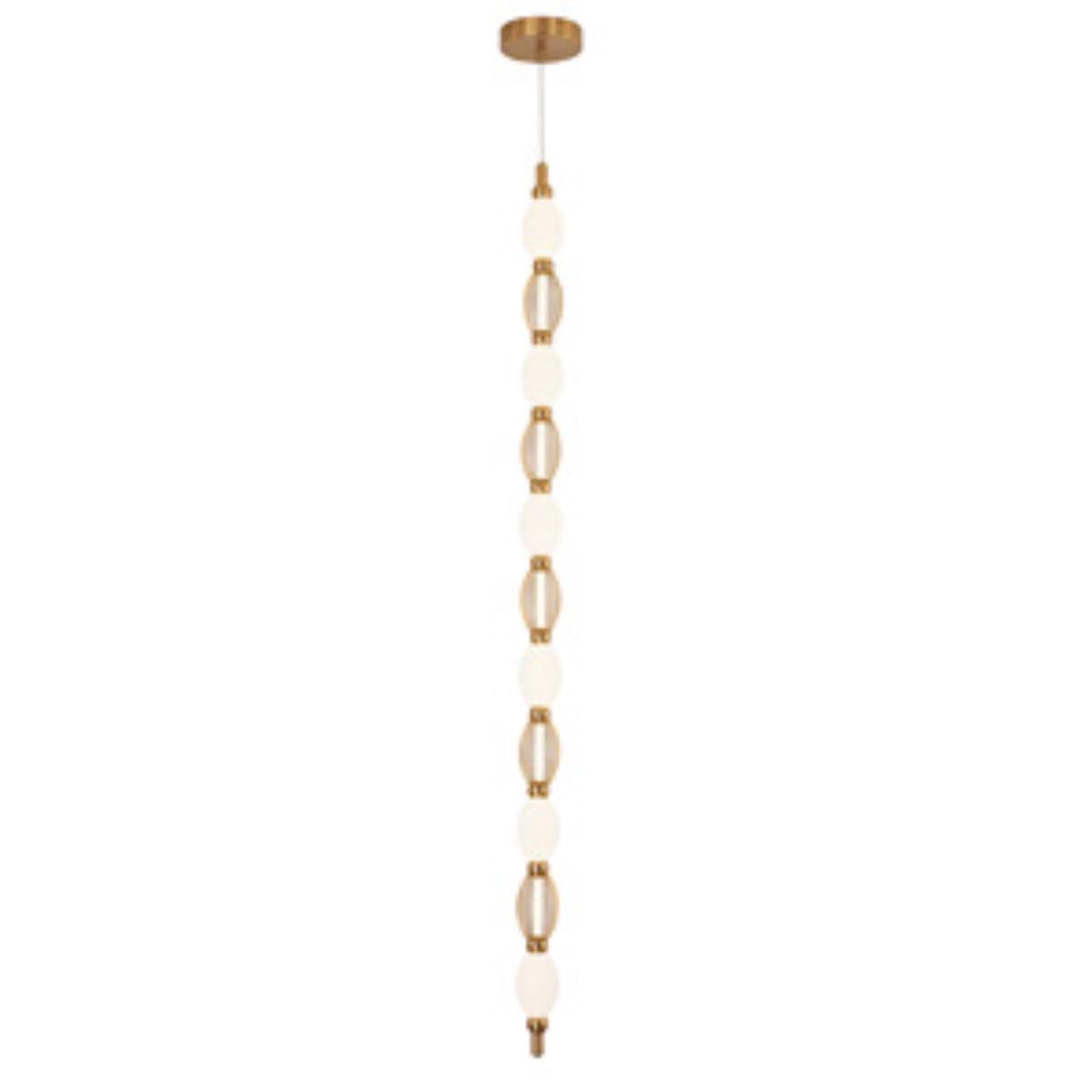 Основой конструкции служит гибкая силиконовая трубка со встроенной лентой LED. На эту трубку нанизаны плафоны из белого акрила и декоративной металлич