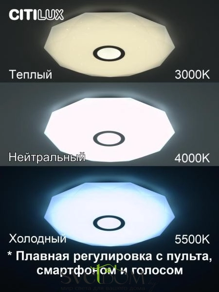 Citilux Диамант Смарт CL713A80G Умная люстра Хром — Светодиодная потолочная люстра Диамант Смарт с голосовым управлением является ярким представителем современных УМНЫХ хай-тек светильников экосистемы SMART. Выпускается с белым глянцевым плафоном с эффектом звездного небо