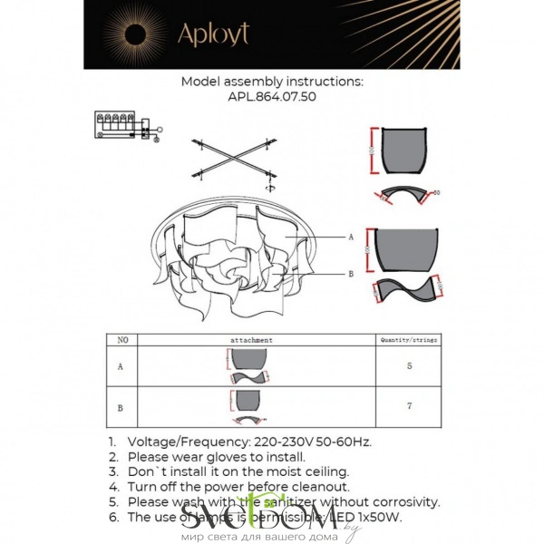 Люстры потолочныеAPL.864.07.50 Aployt | Svetdom.by