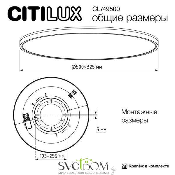 CITILUX CL749500 NORMA Белый с пультом и RGB — Общее освещение без подвеса, подходит для низких потолков