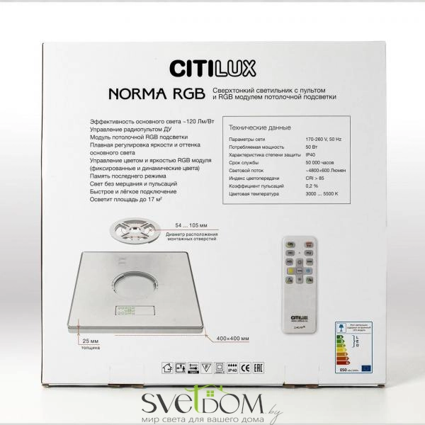 CITILUX CL749K400 NORMA Белый с пультом и RGB — Общее освещение без подвеса, подходит для низких потолков