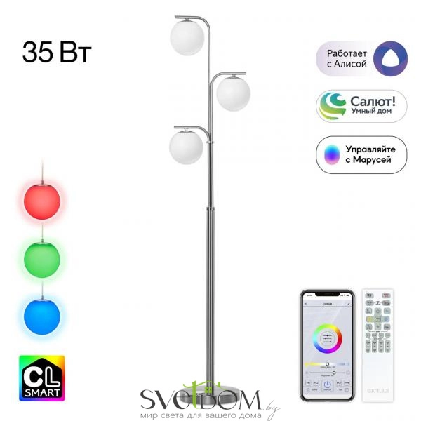 Citilux Адам Смарт CL228A931 RGB LED Умный торшер Матовый Хром — Светодиодный напольный светильник Адам Смарт RGBс голосовым управлением, является ярким представителем современных УМНЫХ светильников экосистемы SMART. Торшером можно управлять: из приложения на смартфоне по Wi-Fi при на