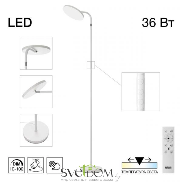 Citilux SOLO CL804060 LED Торшер с пультом Белый — Светодиодный напольный светильник SOLO с сенсорным управлением выполнен в современном стиле.