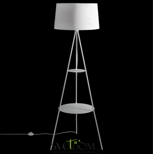 Citilux Рейнер CL806020 Торшер со столиком Белый — Стильный торшер Рейнер на трех прочных металлических ножках, оснащенный двумя удобными столиками-полками, станет изысканным дополнением интерьера вашей гостиной, спальни или рабочего кабинета.