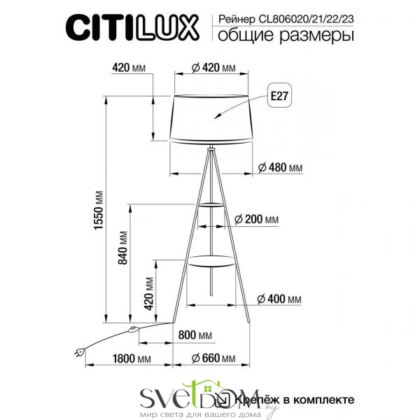 Citilux Рейнер CL806021 Торшер со столиком Чёрный — Стильный торшер Рейнер на трех прочных металлических ножках, оснащенный двумя удобными столиками-полками, станет изысканным дополнением интерьера вашей гостиной, спальни или рабочего кабинета.