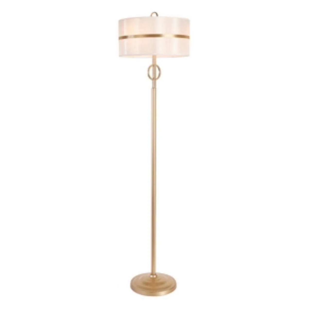 Золотой каркас, плафон из белой ткани с золотой лентой