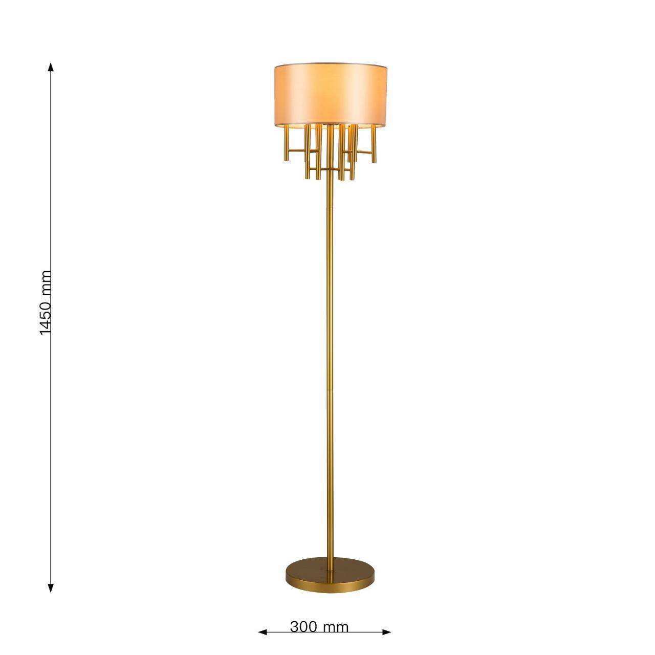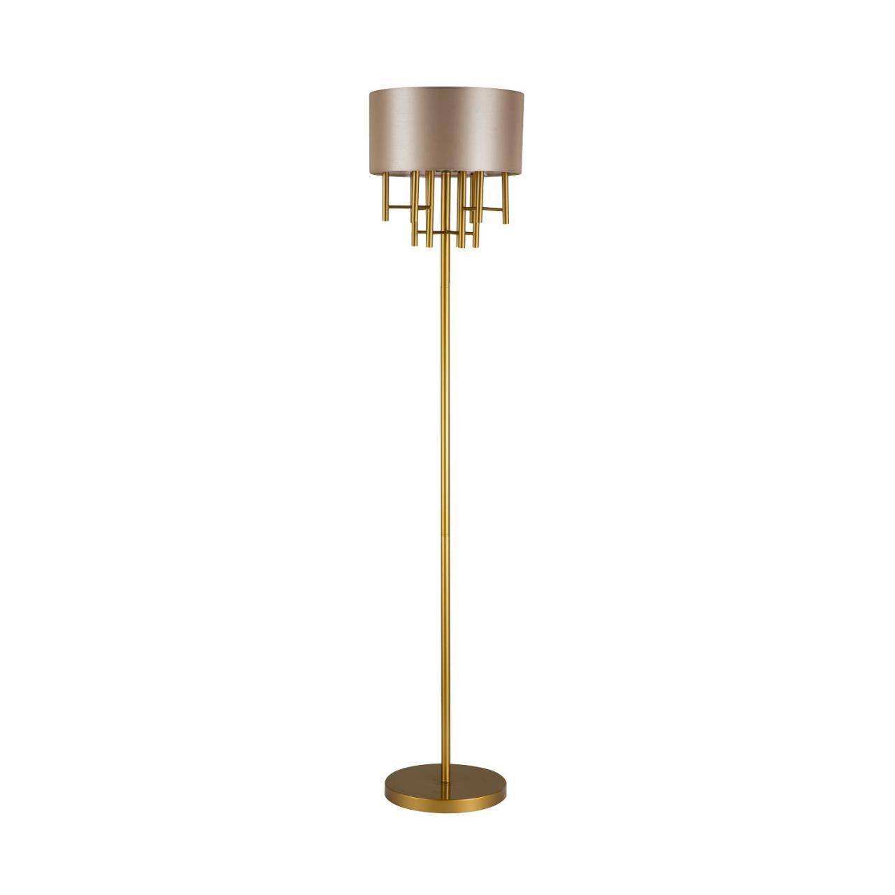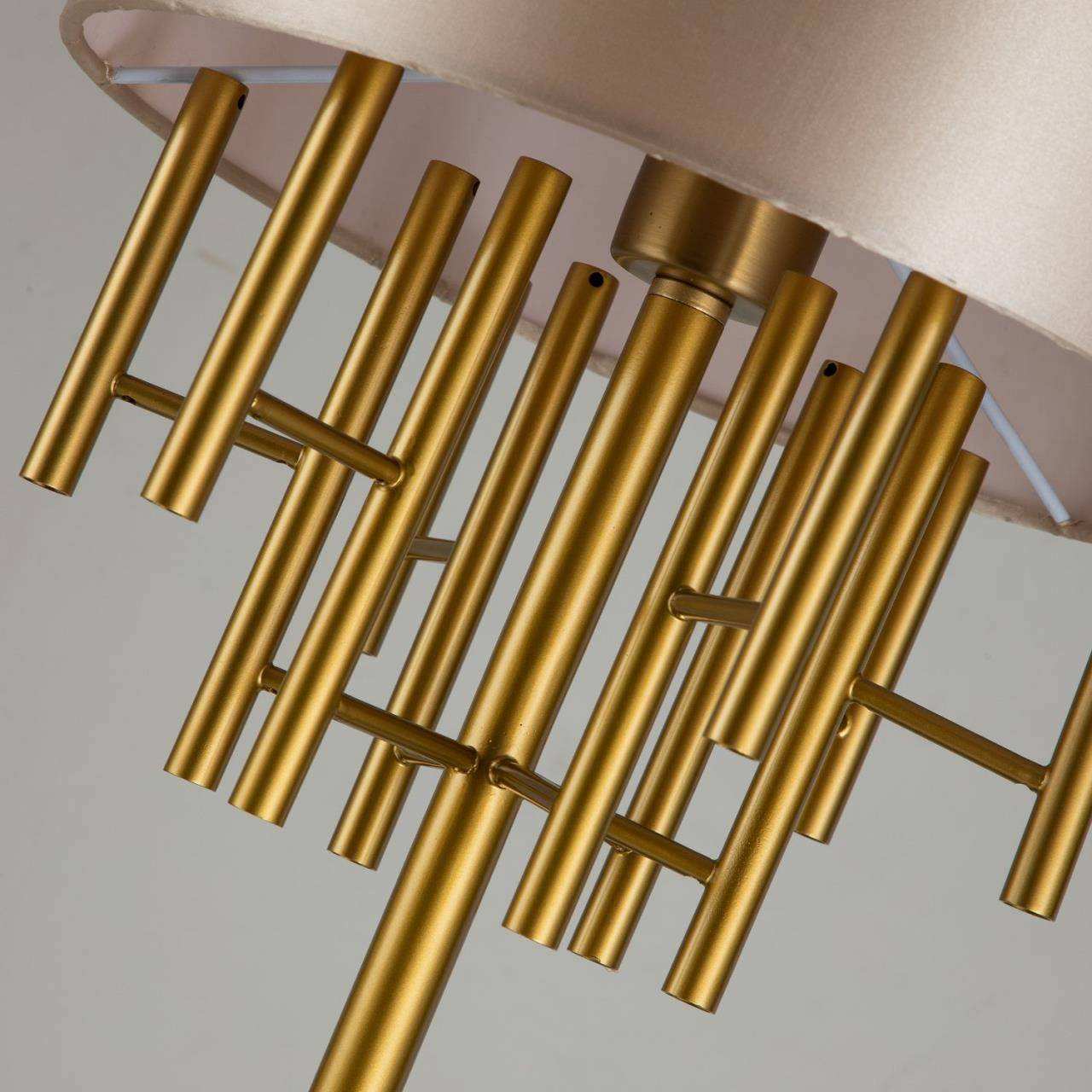 каркас цвета латуни, абажур из глянцевой бежевой ткани