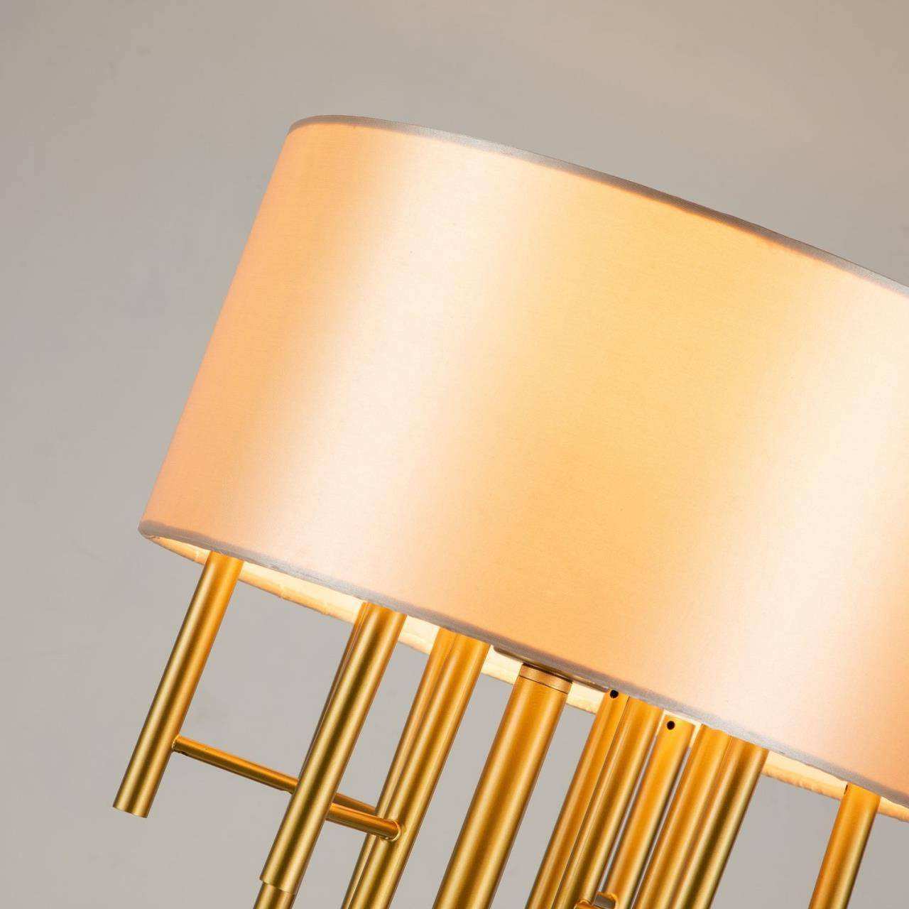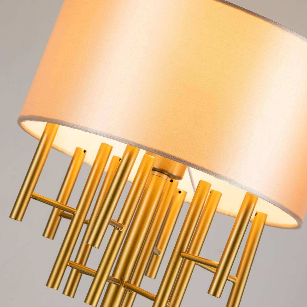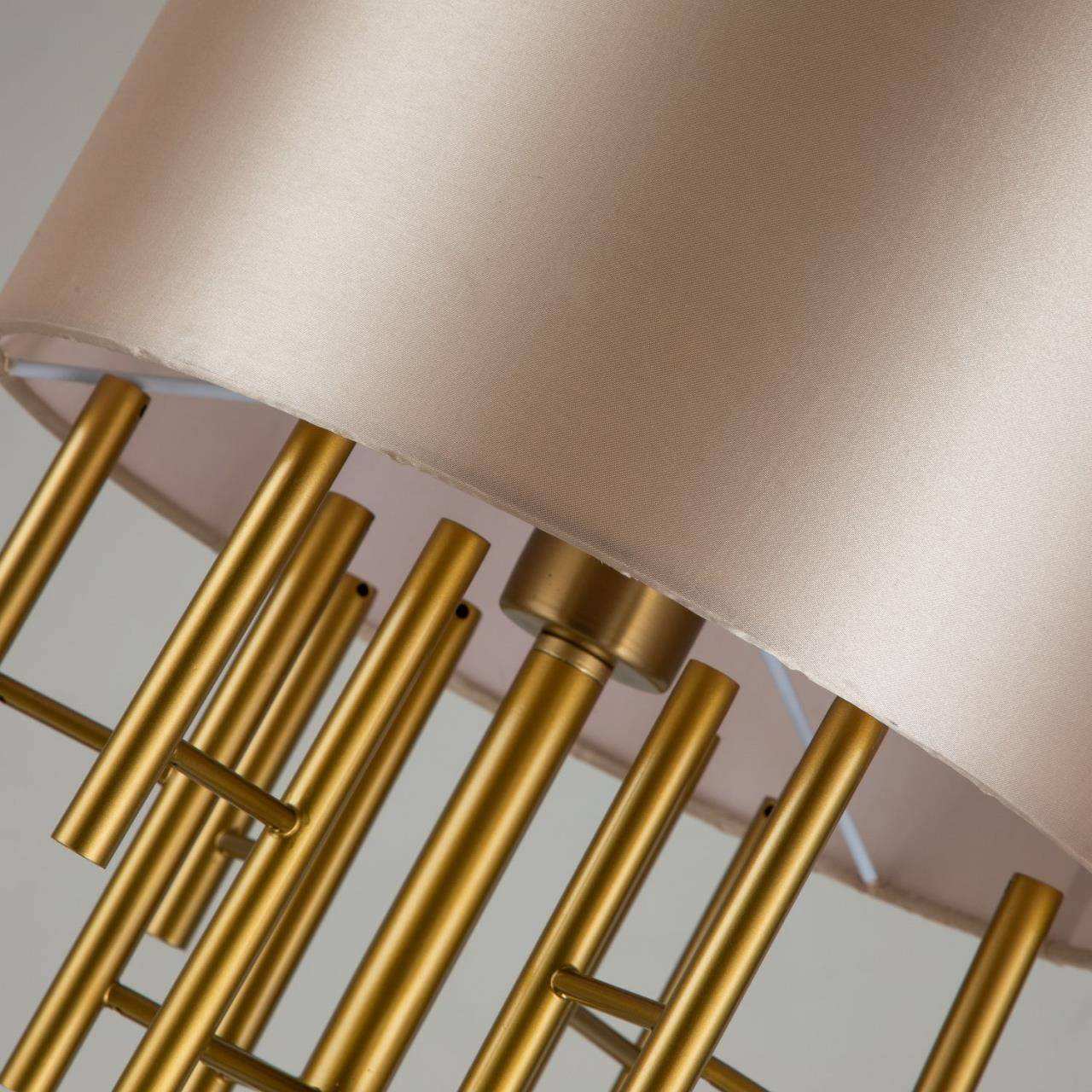 Каркас цвета латуни, абажур из глянцевой бежевой ткани