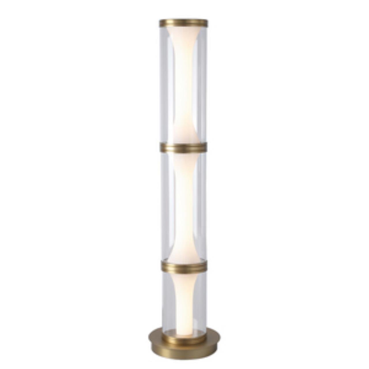 Торшер с тремя сегментами с двойными плафонами в виде стеклянных цилиндров, внутренние рифленые белые плафоны, с расположенными в них LED-лентами, эле