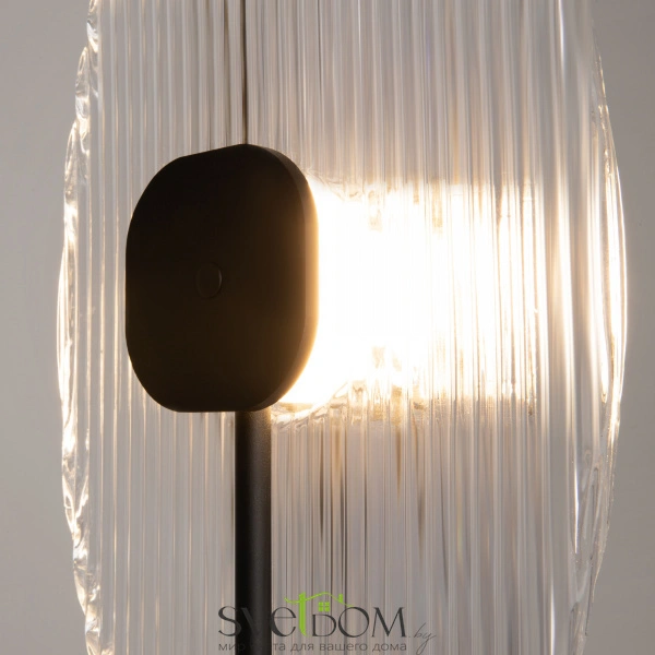 Металлическая арматура. Цвет – матовый черный. Декор – литое стекло. Фактурный орнамент. Высота подвесного светильника регулируется. LED-источник света.